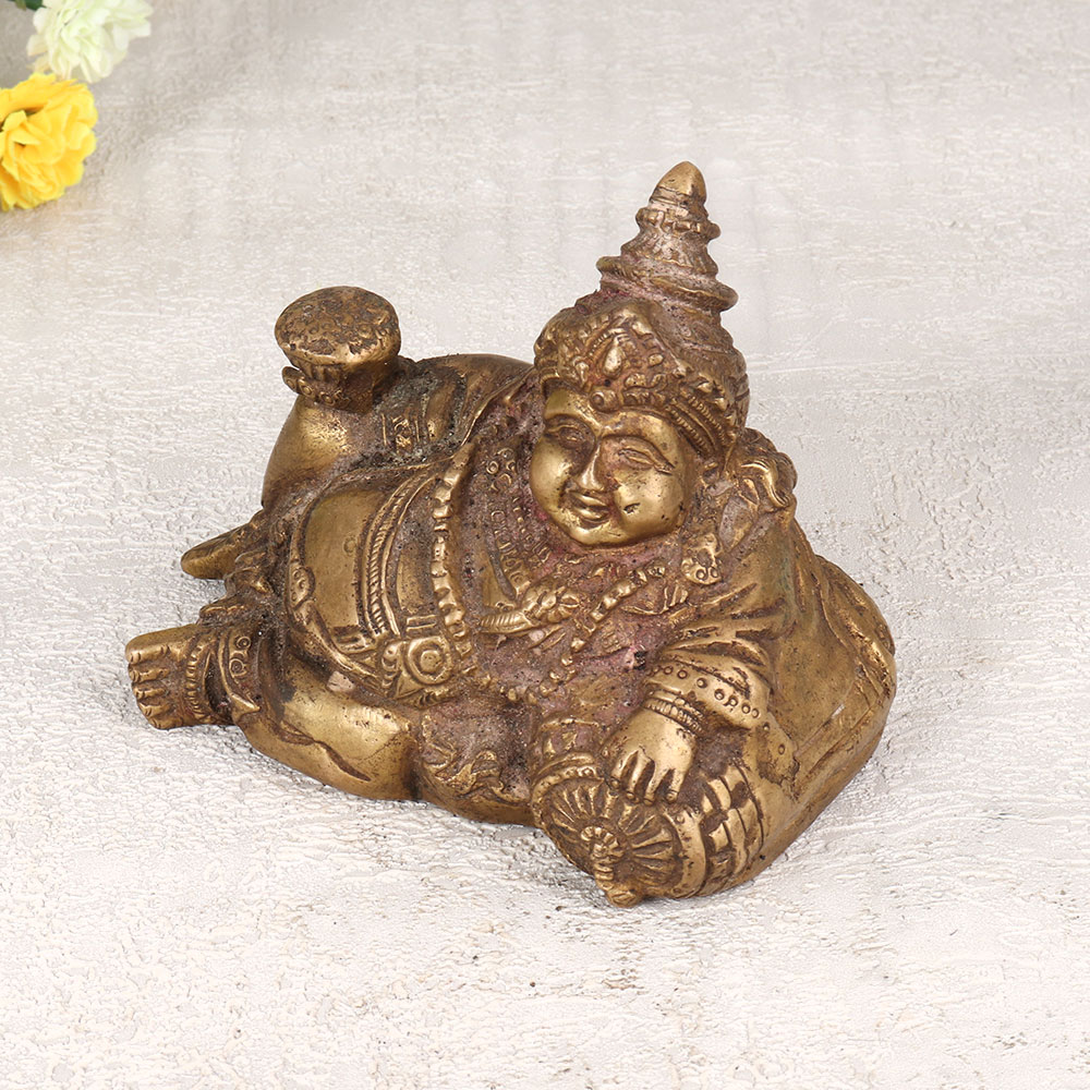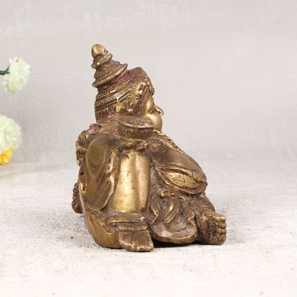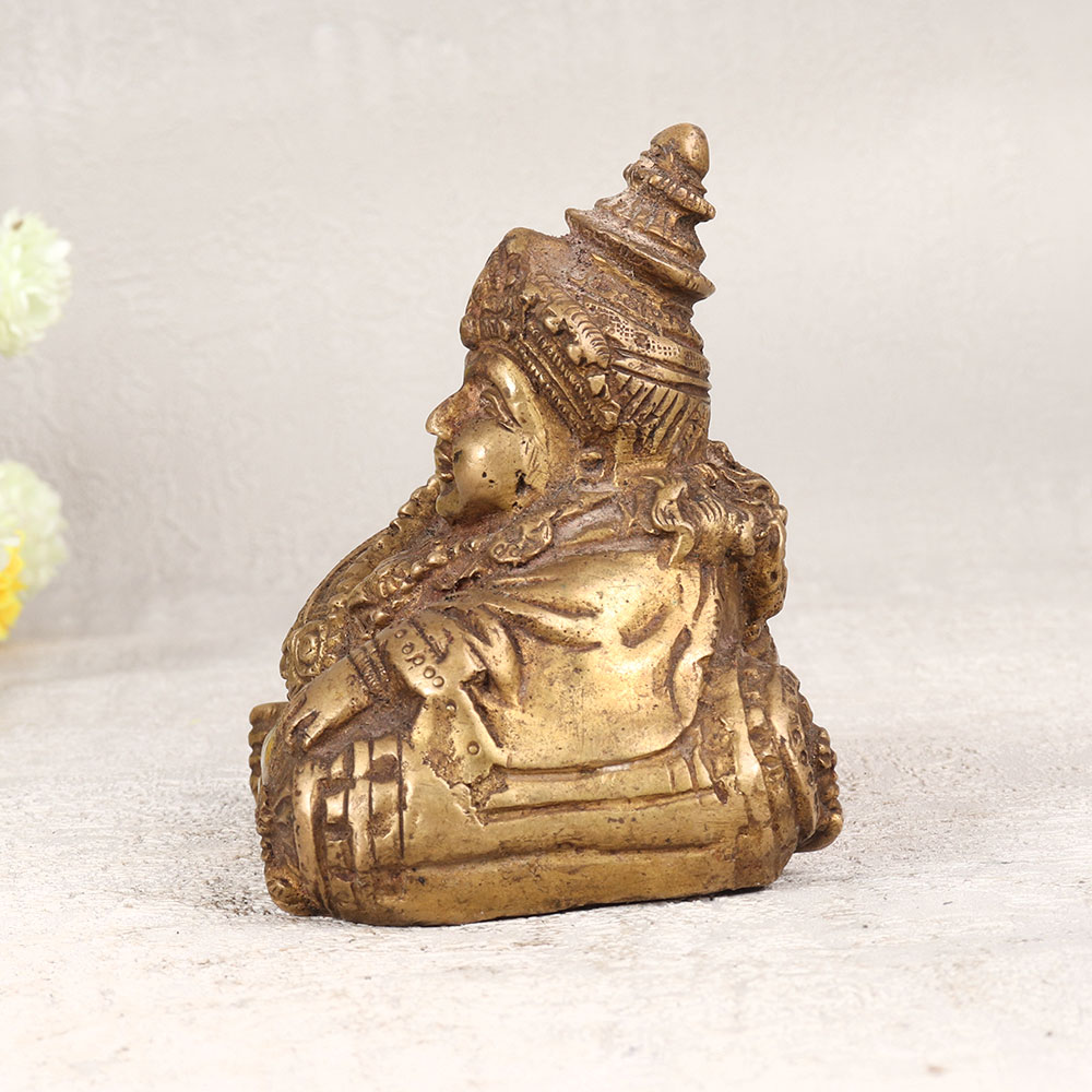 Buy a Brass Statue of Lord Kuber online which is a magnificent embodiment of prosperity and wealth crafted in the revered Nepalese Art tradition. Handmade with precision by highly talented Indian artisans, this stunning statue showcases the timeless craftsmanship that has been passed down through generations. Cast from high-quality brass, the statue boasts a rich antique brown finish, adding a touch of vintage elegance to any space. Standing as a symbol of opulence and divine abundance, Lord Kuber is revered in Hindu mythology as the treasurer of wealth and guardian of prosperity. Versatile and striking, this masterpiece is a perfect addition to your home, office, restaurant, hotel, or cafe prayer room. Its detailed design and intricate features make it a standout piece that can effortlessly elevate the aesthetic of any environment. This Brass Statue of Lord Kuber is not only a captivating decor item but also a meaningful gift for your family, friends or relatives on special, festive, or auspicious occasions. Embrace the cultural heritage and bring blessings of affluence into your life with this exceptional work of art that seamlessly blends tradition and beauty.