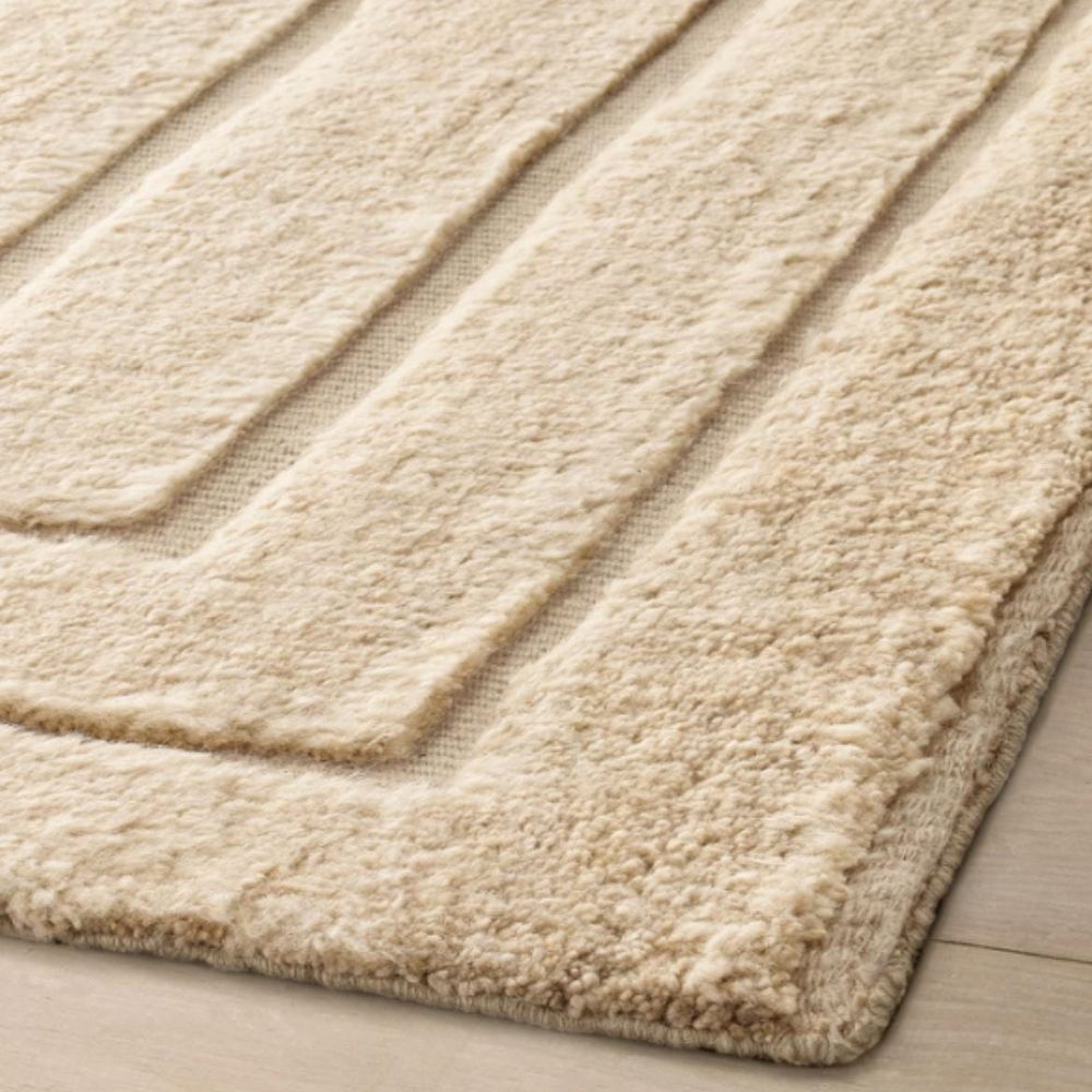 Bring timeless elegance and a touch of minimalism into your interiors with the Beige Handmade Cotton & Wool Rug. Featuring a subtle raised concentric rectangular design, this rug blends artisanal craftsmanship with a modern geometric style. Its neutral beige tone ensures versatility, making it suitable for both classic and contemporary décor. Packed & quality-checked by Indianshelf.