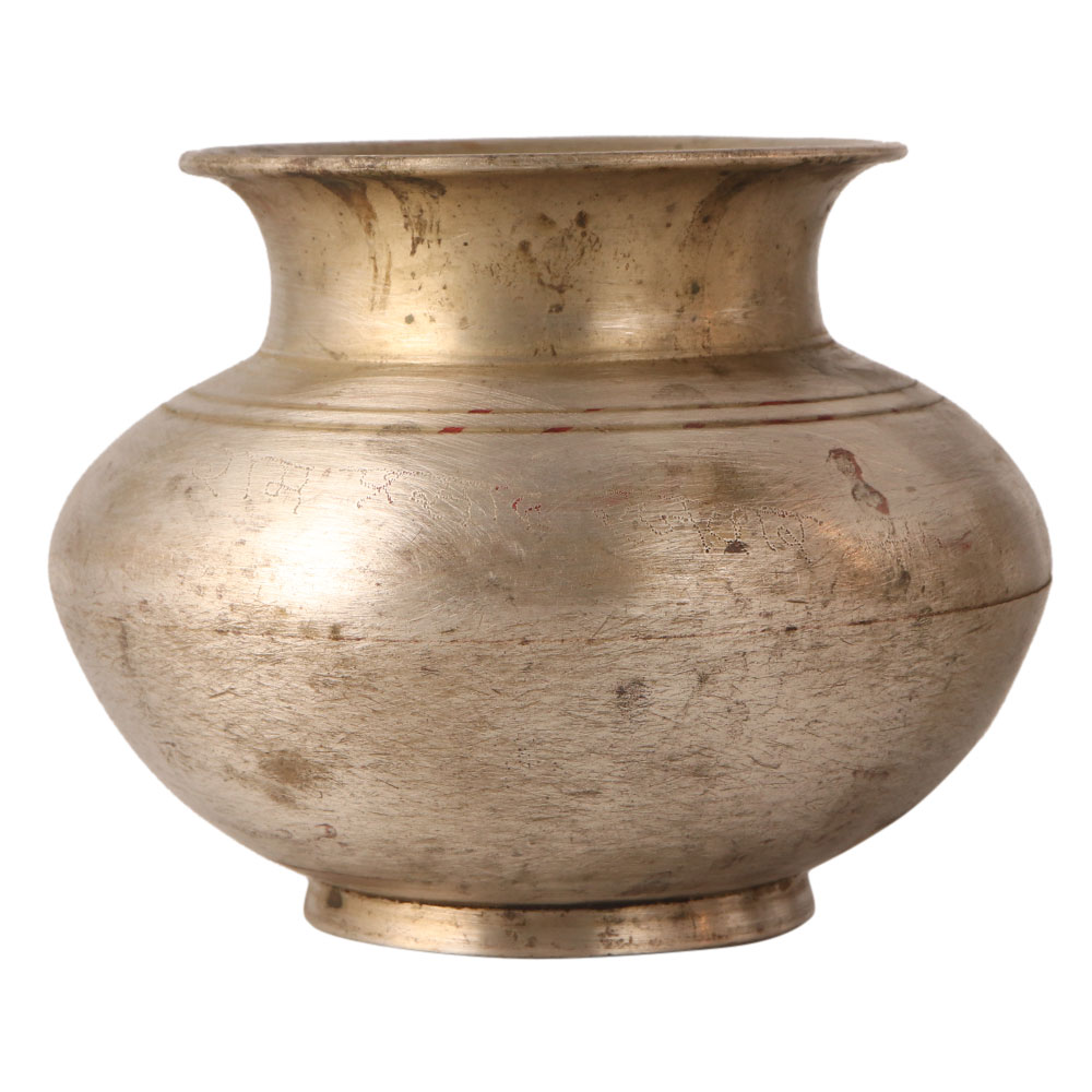 The Gangajal lota or water pot is hand carved in northern India. It is used in auspicious Hindu events. You can use it as a flower pot or store you gems in it and then present them at the table.