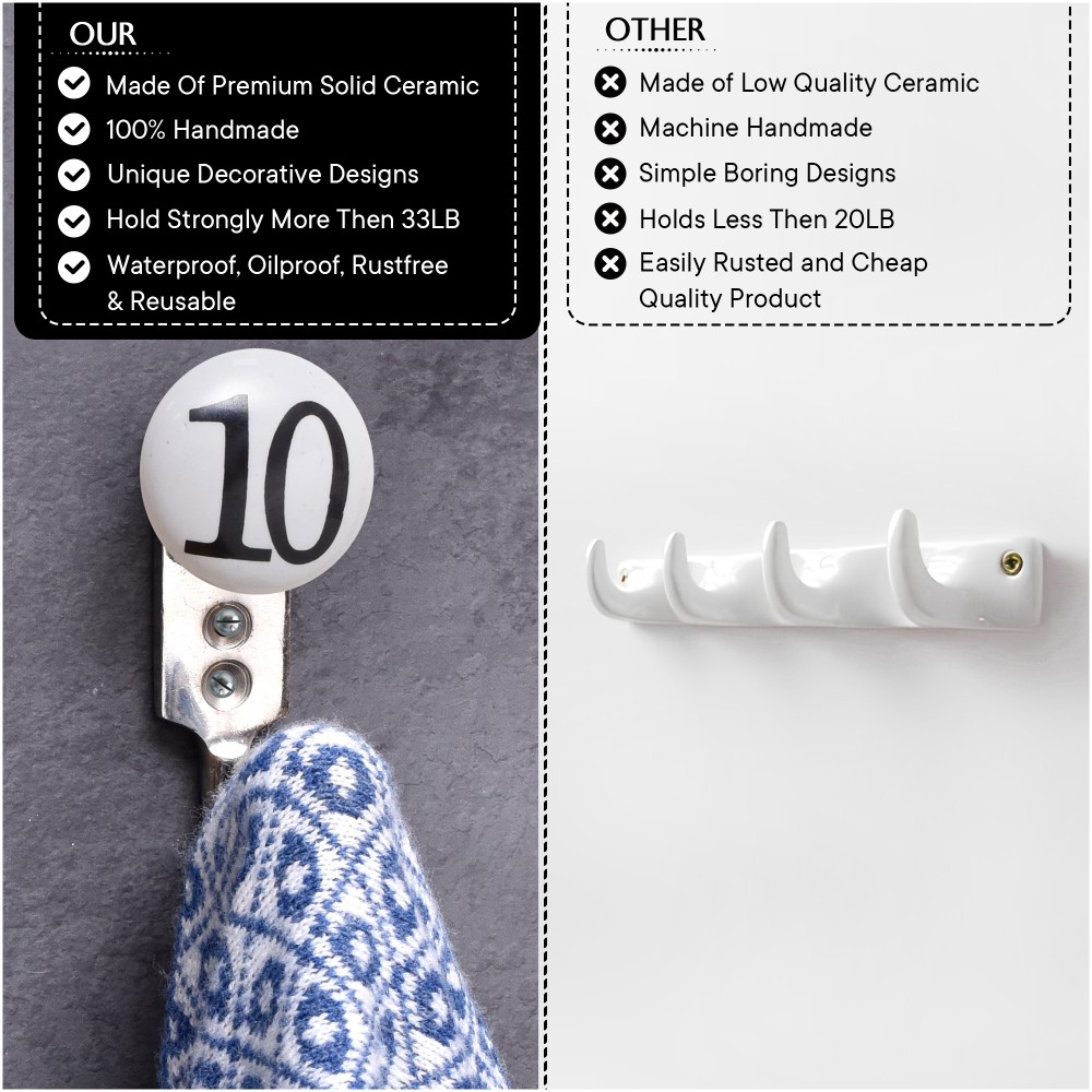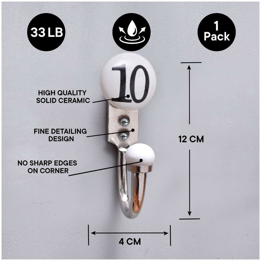10 Flat Ceramic Hook. When Put on Wall or Cabinet It is An Art in Itself. This Hook is Strong Enough to Hold Your Keys, Tea Cups, Hand Towels, Cloths Etc.