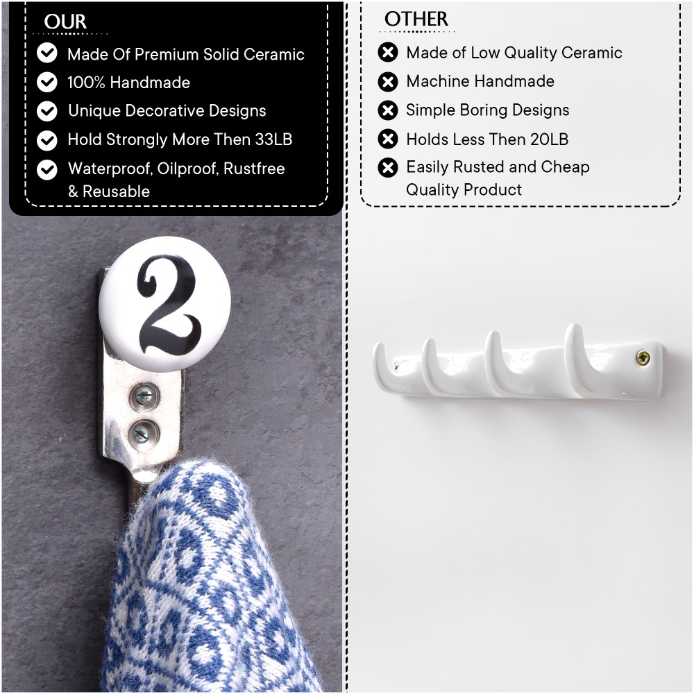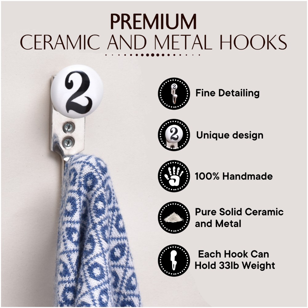 2 Flat Ceramic Hook. When Put on Wall or Cabinet It is An Art in Itself. This Hook is Strong Enough to Hold Your Keys, Tea Cups, Hand Towels, Cloths Etc.