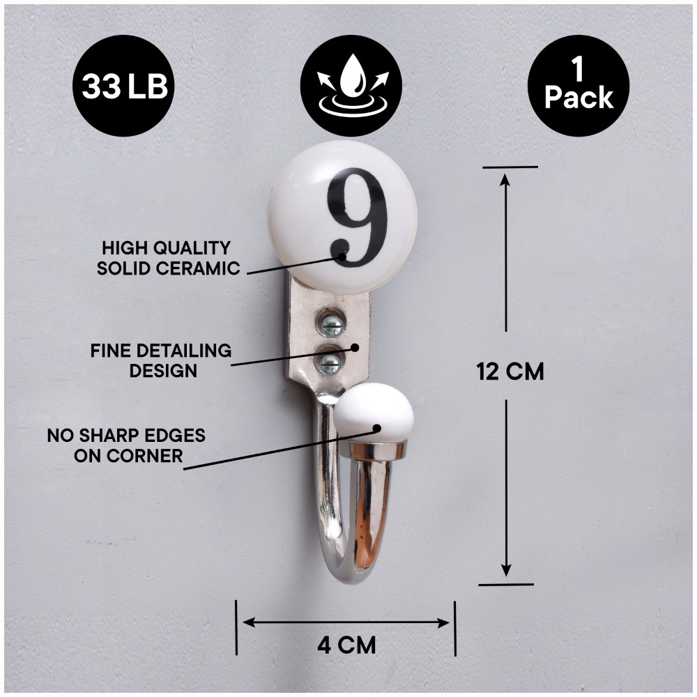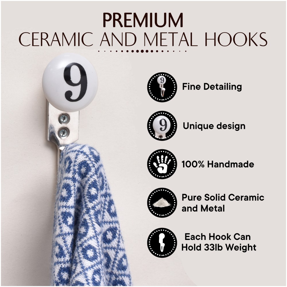 9 Flat Ceramic Hook. When Put on Wall or Cabinet It is An Art in Itself. This Hook is Strong Enough to Hold Your Keys, Tea Cups, Hand Towels, Cloths Etc.