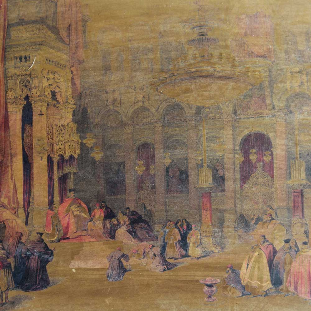This is a old oil painting framed english men and women. The scenario depicts a typical Sunday afternoon in the working class, with people dressed up and dancing, drinking, and eating galettes late into the night.
