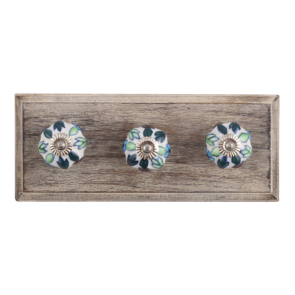 Okra Ceramic Wooden Hook. A Perfect Complement to the Soft Tone of the Wood are these White Traditional Hat & Coat Hook Made of Genuine Porcelain and Brass. It can be use to Hang Jewellery, Leashes, Towels, Scarves, Light Weight Sweaters, Caps Etc.