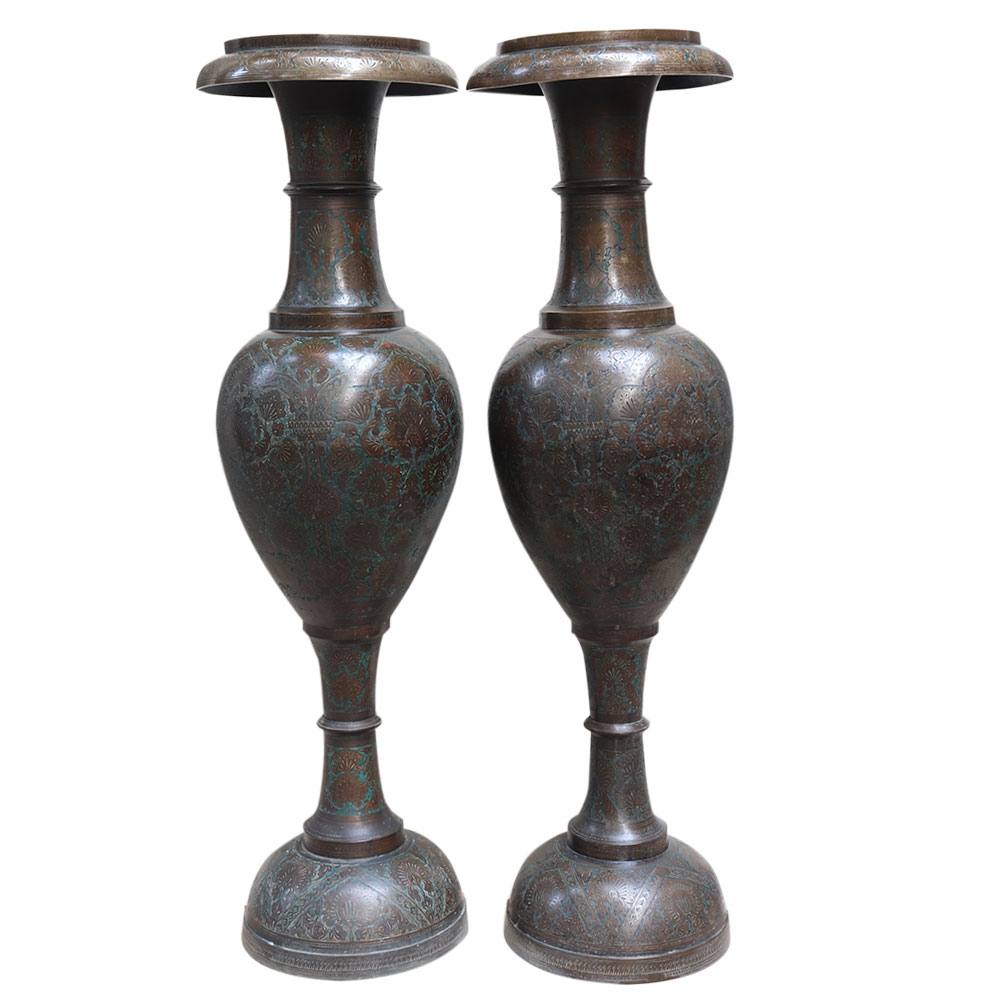 Brass Flower vases with Badri and fine art carving work. The highlight of theses flower vase is the antique finish and badri work that is done by hand. Suitable for both artificial and natural flowers. Perfect for home decor and gifting.