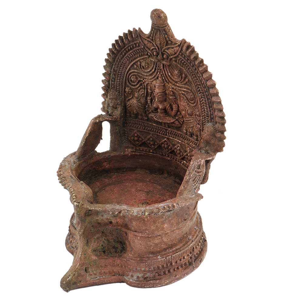Hand crafted goddess Laxmi engraved with small oil container enough to hold oil and ghee for a single wick. Wedding decoration, anniversary gift, festival and other religious occasions.