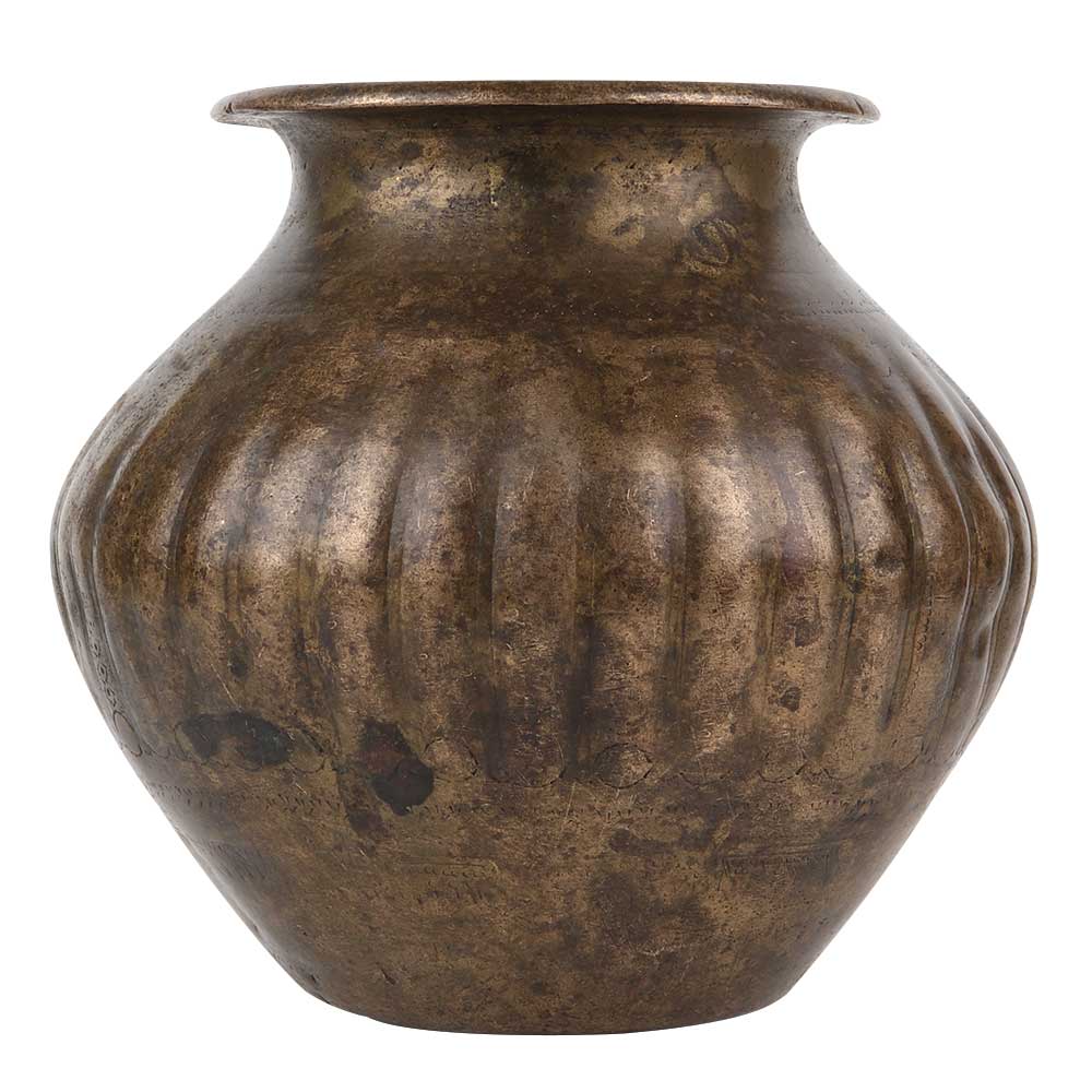 Hand crafted brass water pot with engraved design of birds, leaves and flower allover the surface of the pot. Flower decoration pot arrange fresh flowers or dried leaves inside the pot. Excellent gift for a house warming part, return gift on Diwali, Christmas, new year etc.