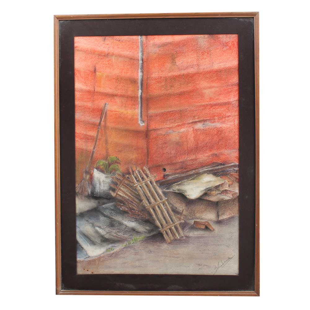 This abstract artwork of a red wall corner and a broom will add to the room's overall ambiance and make it feel more inviting and relaxed. On any wall, it looks even better. It's the ideal gift for any occasion.