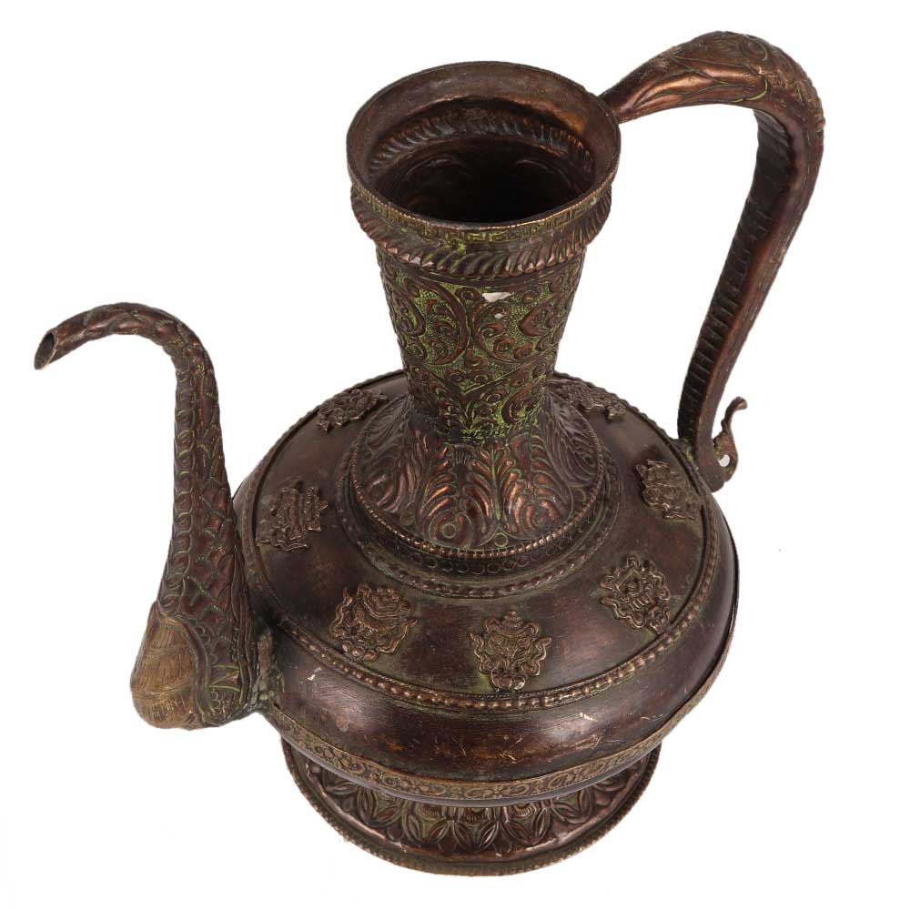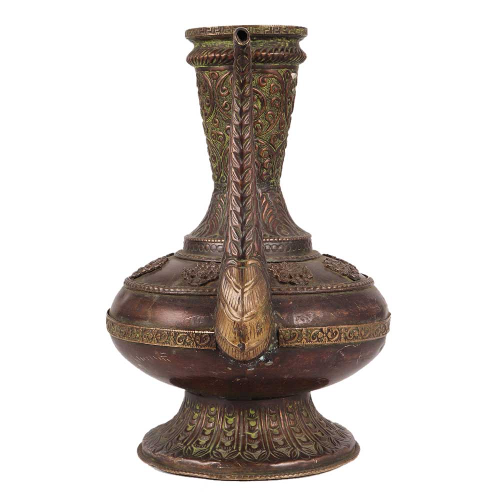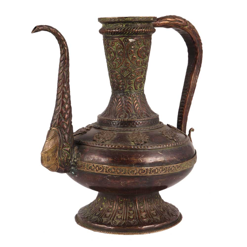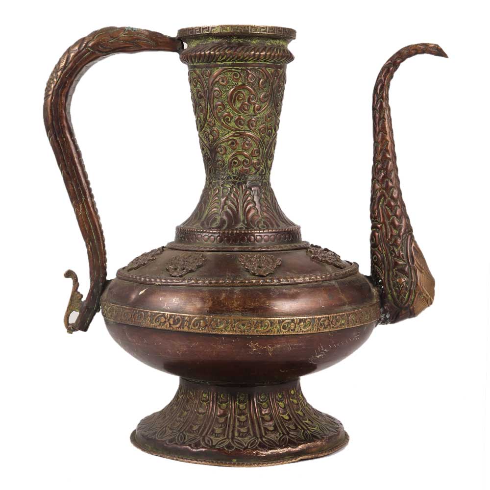 This elegant copper wine surahi with foliage sequence and Islamic design engraved style would make an ideal treat for any wine enthusiast. It would look great in a wine cellar, Butler's Kitchen, console table, or local pub. The surahi would make a wonderful Christmas present for friends and relatives.
