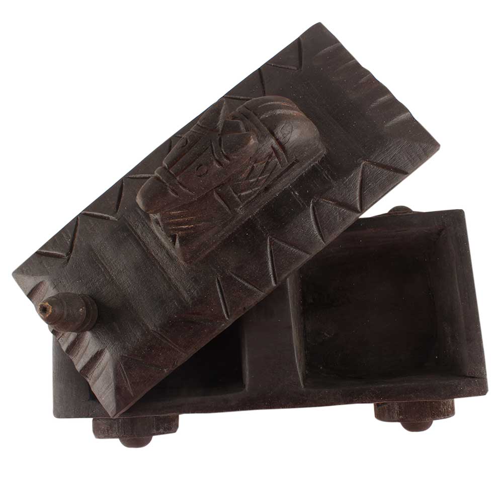 Old Nandi Wooden Box Indian Handicraft. Ceramic Drawers in Wooden Frame. The Spice Boxes are designed with different patterns. These boxes are made using natural wood which does not harm the purity of spices.