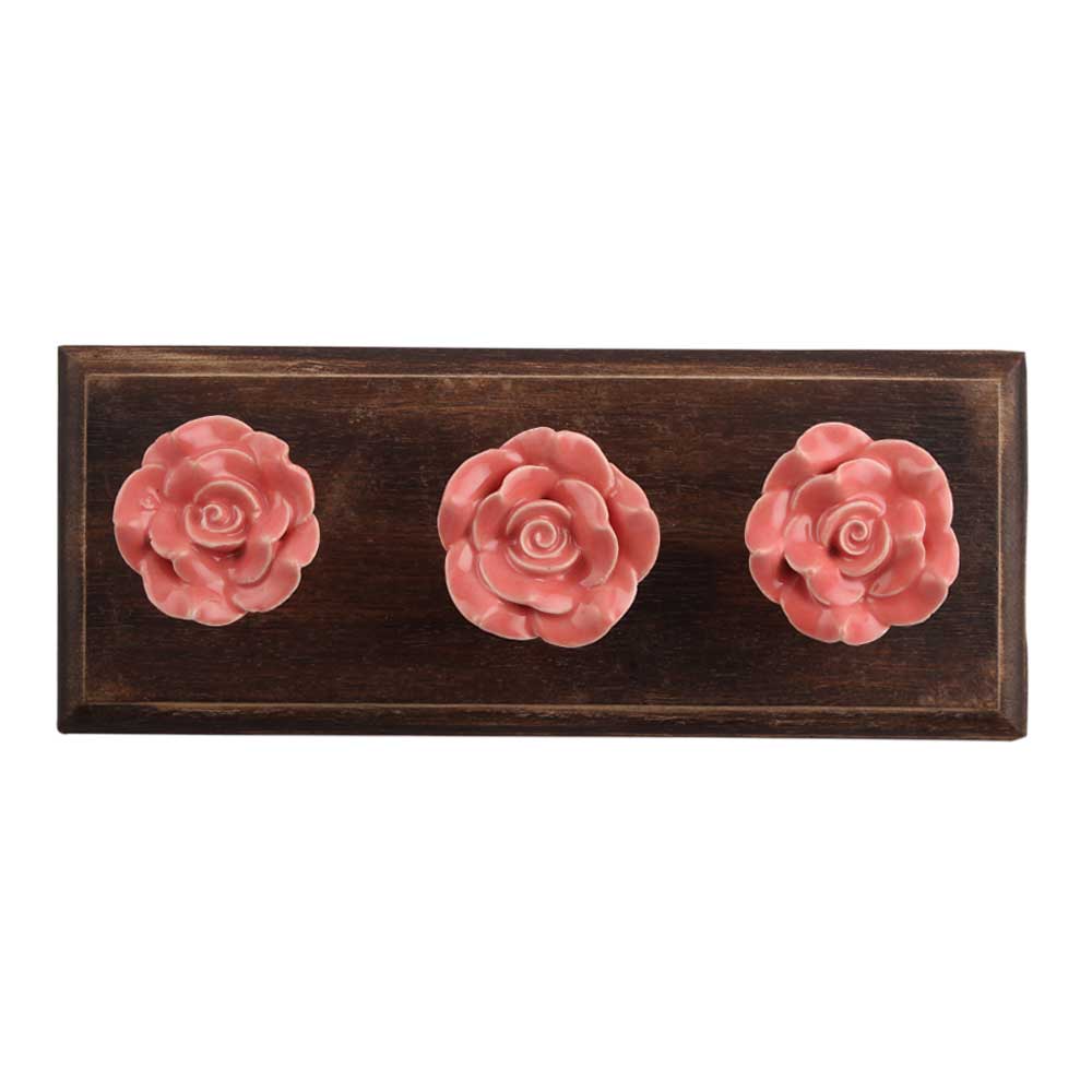 Old Pink Rose Ceramic Wooden Hook. A Perfect Complement to the Soft Tone of the Wood are these White Traditional Hat Coat Hook Made of Genuine Porcelain and Brass. It can be use to Hang Jewellery, Leashes, Towels, Scarves, Light Weight Sweaters, Caps Etc.