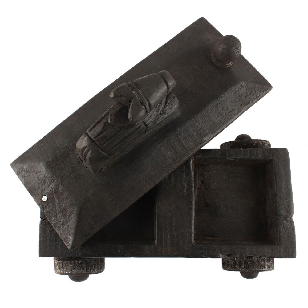 Material: Wood and Ceramic Size: Height: 6.5 inches, width: 5.5 inches and depth: 9 inches Approx Handmade