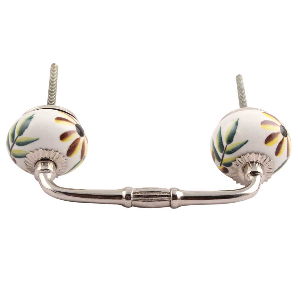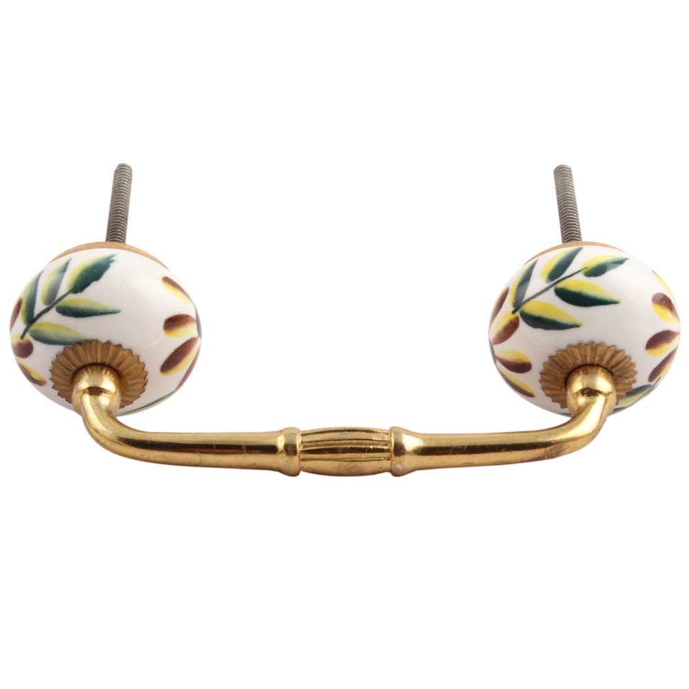 Olive County Leaf Ceramic Bridge Handle. Ideal for Drawer, Dresser, Cabinet, Wardrobe, Cupboard and Almirah.