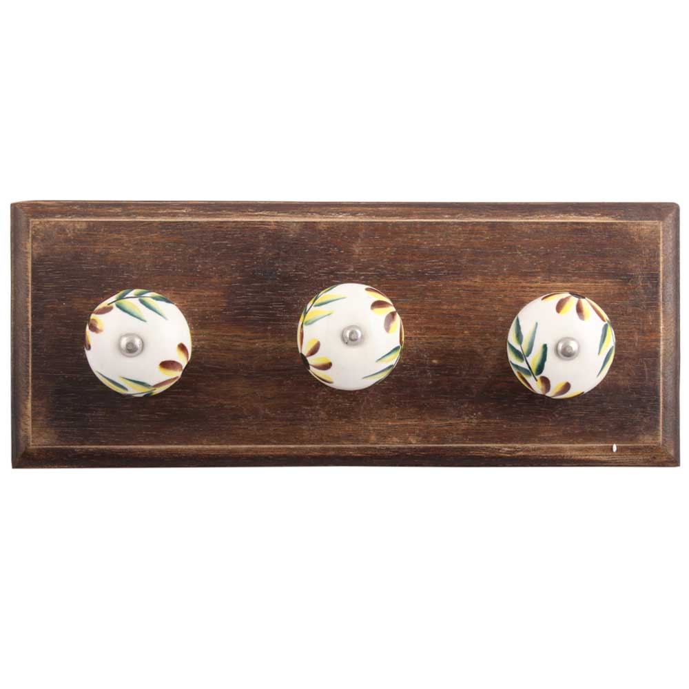 Olive County Leaf Ceramic Wooden Hook. A Perfect Complement to the Soft Tone of the Wood are these White Traditional Hat & Coat Hook Made of Genuine Porcelain and Brass. It can be use to Hang Jewellery, Leashes, Towels, Scarves, Light Weight Sweaters, Caps Etc.
