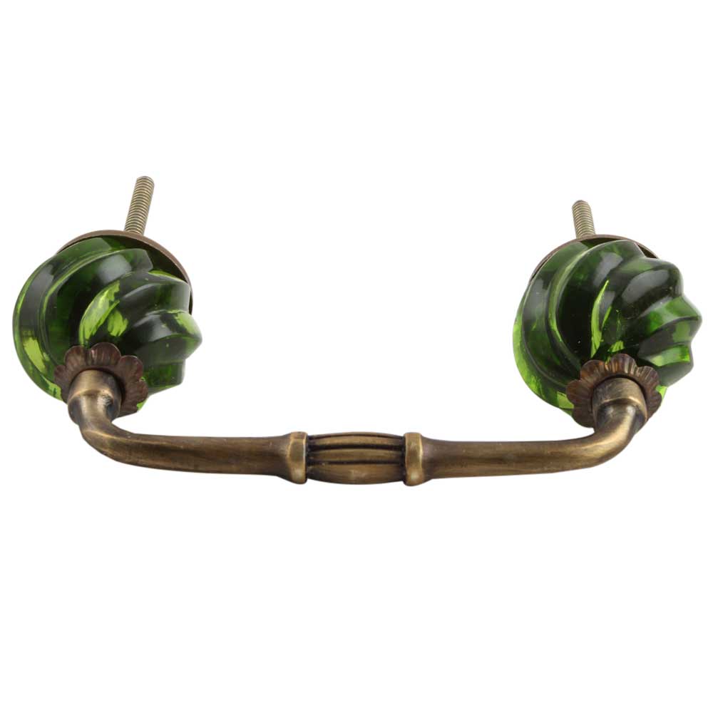 Olive Green Interior Cut Glass Bridge Handle. Ideal for Drawer, Dresser, Cabinet, Wardrobe, Cupboard and Almirah.