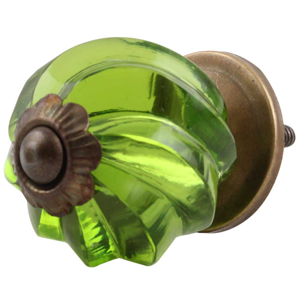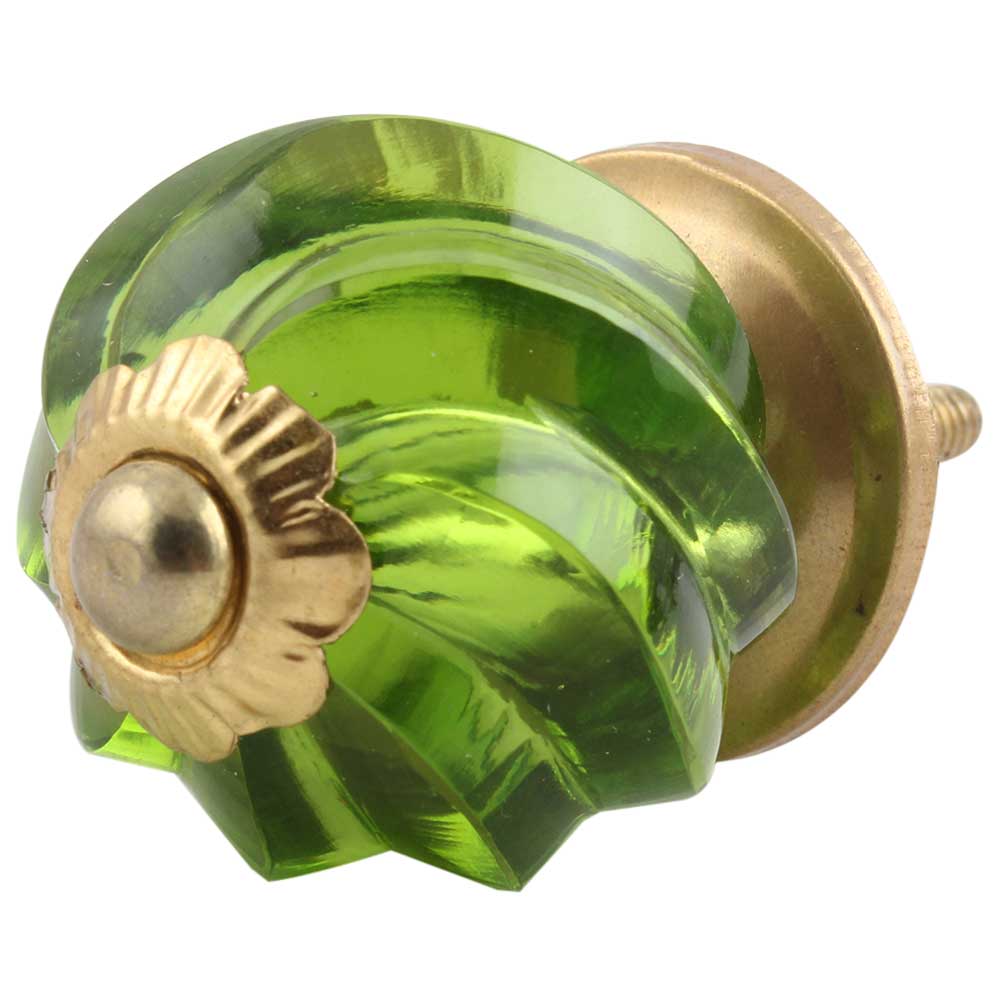 Olive Green Interior Cut Glass Knobs. Ideal for Drawer, Dresser, Cabinet, Wardrobe, Cupboard and almirah