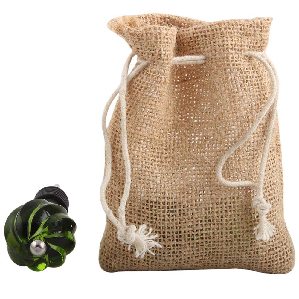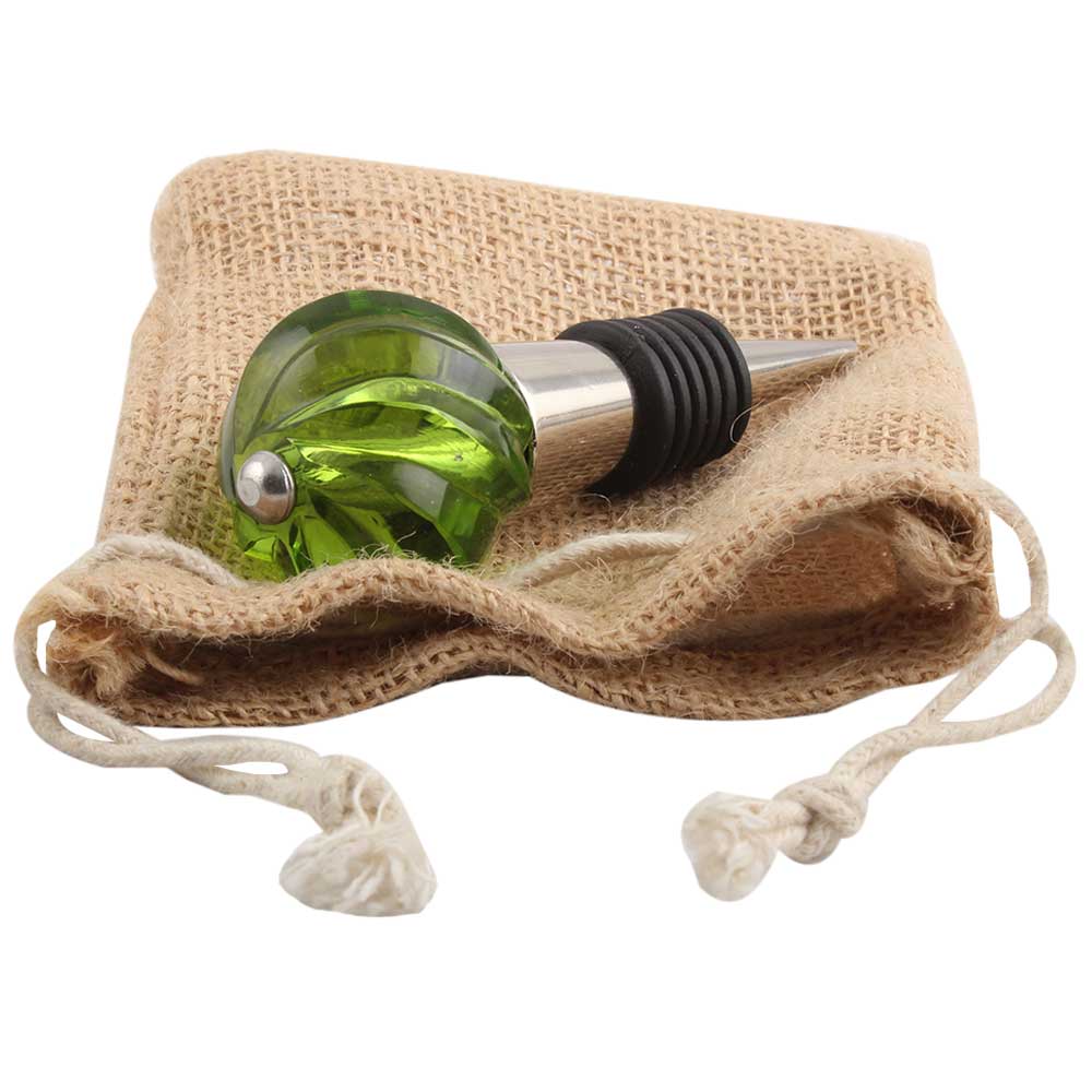 Olive Green Interior Glass Cut Wine Stopper.zinc alloy wine bottle stopper with attractive Jute Bag Packaging.
