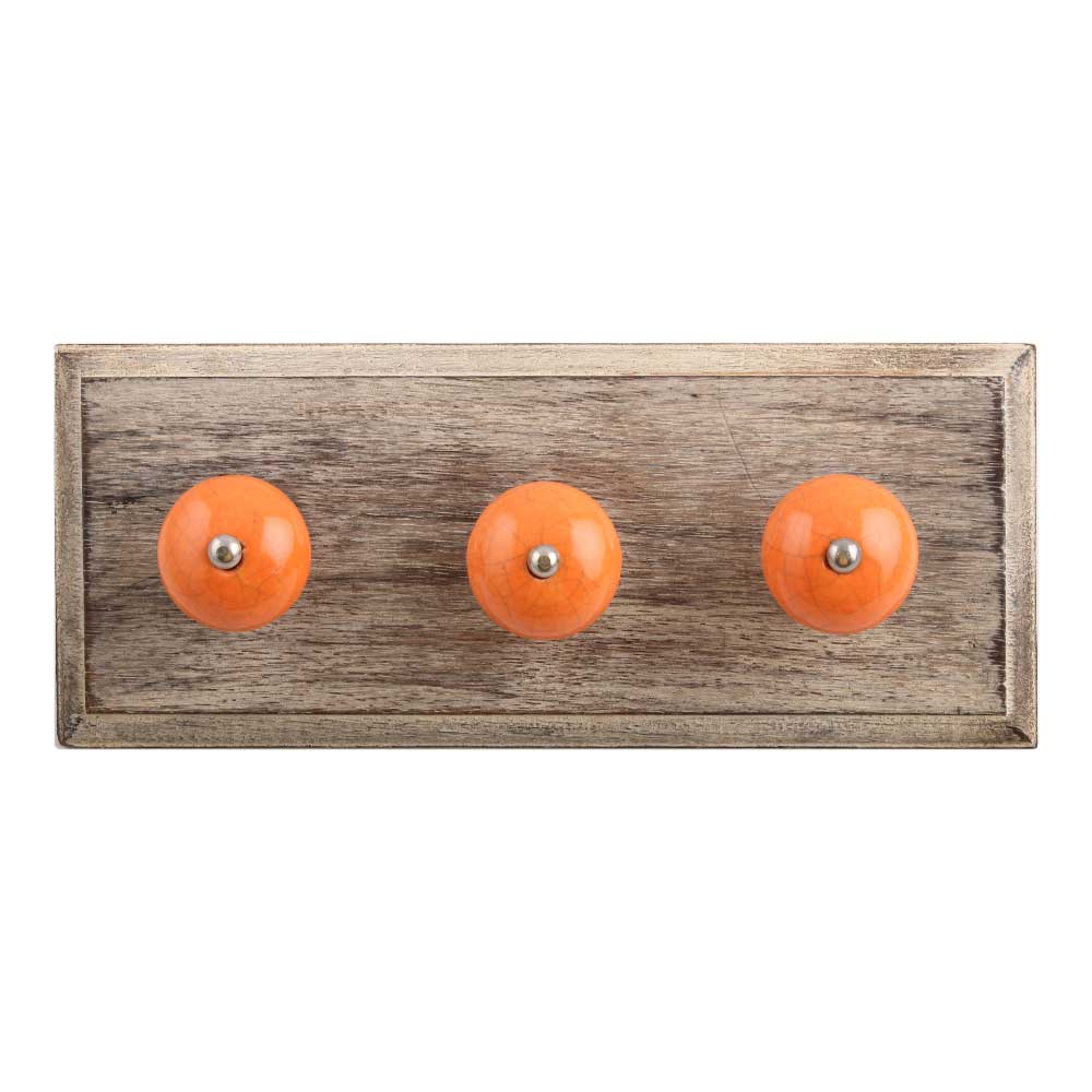 Orange Black Crackle Ceramic Wooden Hook. A Perfect Complement to the Soft Tone of the Wood are these White Traditional Hat & Coat Hook Made of Genuine Porcelain and Brass. It can be use to Hang Jewellery, Leashes, Towels, Scarves, Light Weight Sweaters, Caps Etc.