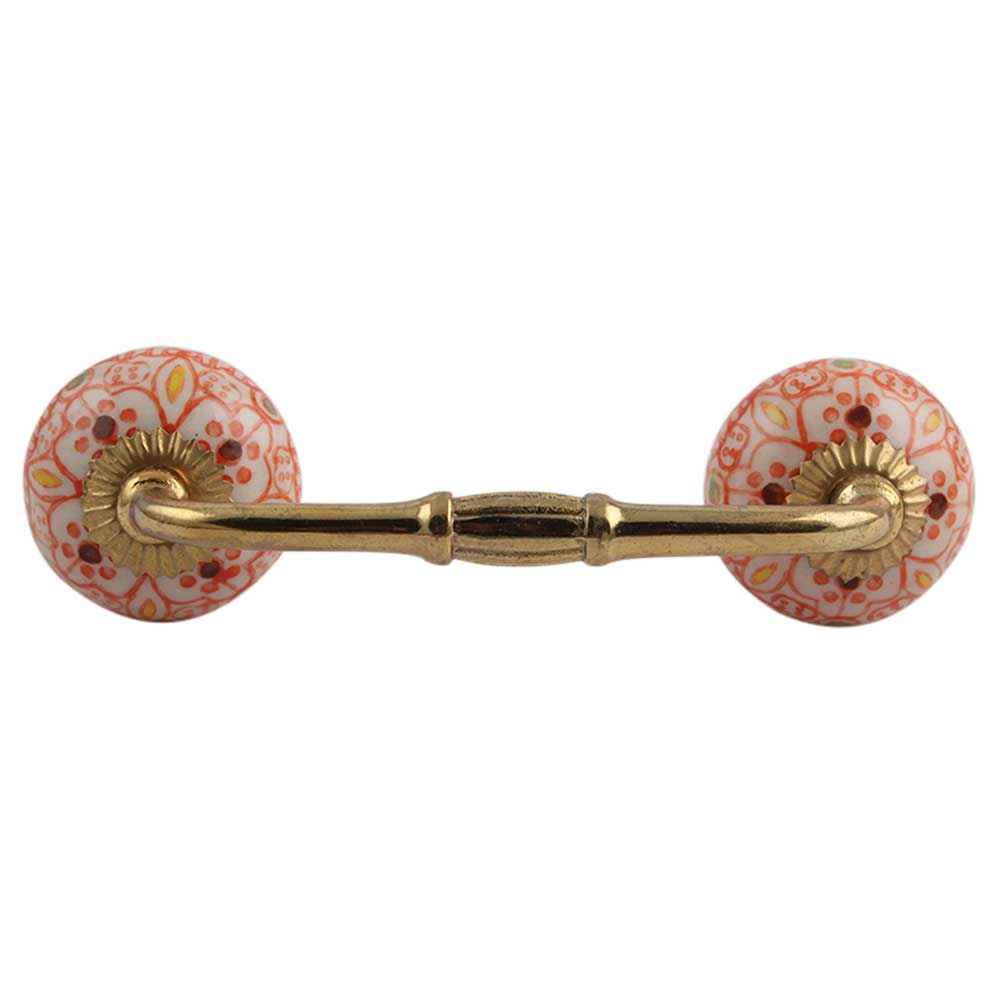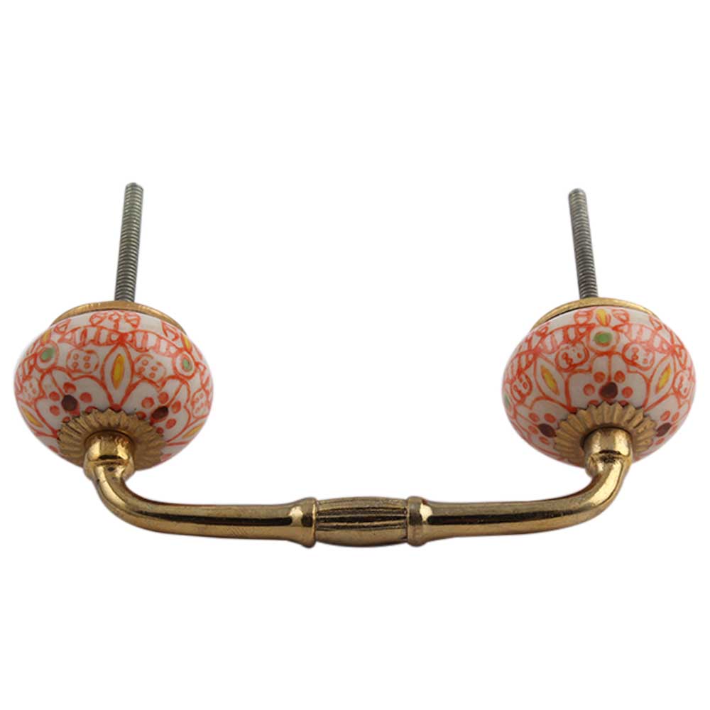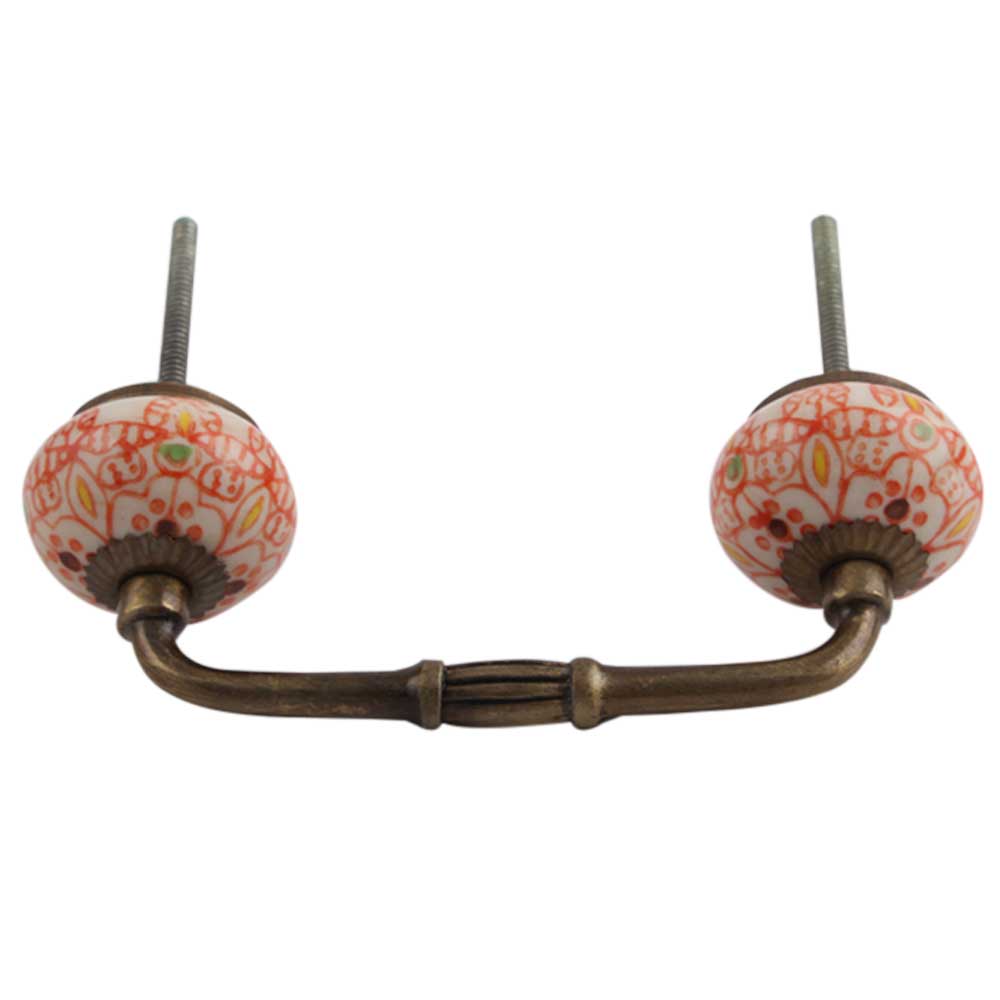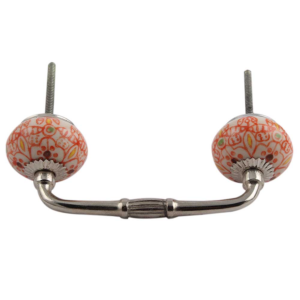 Orange Ceramic Floral Bridge Wardrobe Handle. Ideal for Drawer, Dresser, Cabinet, Wardrobe, Cupboard and Almirah.