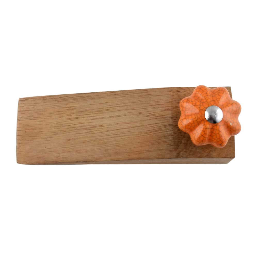 Handmade Ceramic and Wooden Door Stopper.Wooden Door Stopper with a Ceramic Knob to Carry it Easily. This Wooden Door Stopper has Glue Dots under it to Ensure that it does not Slip. It is Handmade by the Craftsmen of India and this Innovative Door Stopper won't Disappoint You.