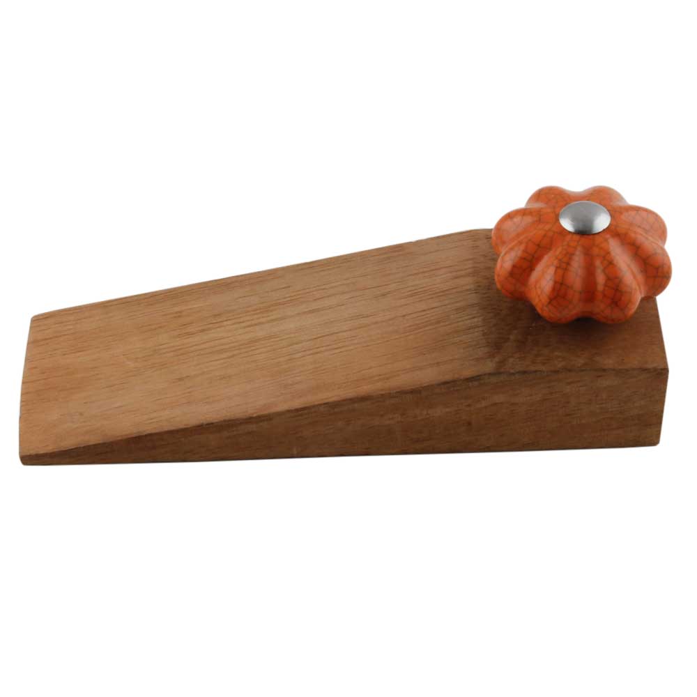 Handmade Ceramic and Wooden Door Stopper.Wooden Door Stopper with a Ceramic Knob to Carry it Easily. This Wooden Door Stopper has Glue Dots under it to Ensure that it does not Slip. It is Handmade by the Craftsmen of India and this Innovative Door Stopper won't Disappoint You.