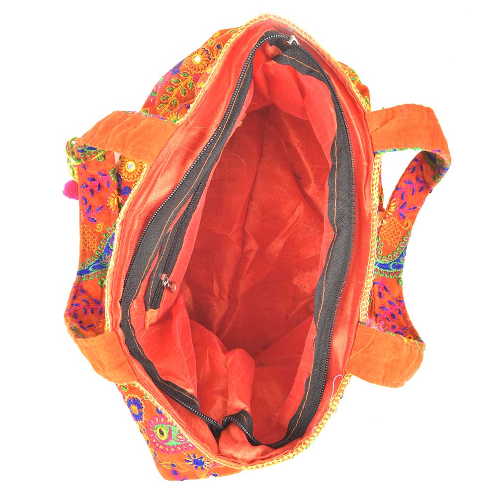 Designer & trendy handmade bag with fine quality material to attract compliments when carried casually as in college or office. This Multi colored handbag is made from cotton, featuring zip closure, helps you to store your important things with ease. Whether you want to use personally or want to gift somebody special, this unique piece of Indian hand art is Perfect for both Purposes.