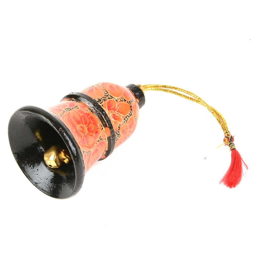 Orange Hand Painted Paper Art Mache Bell Christmas Tree Hanging