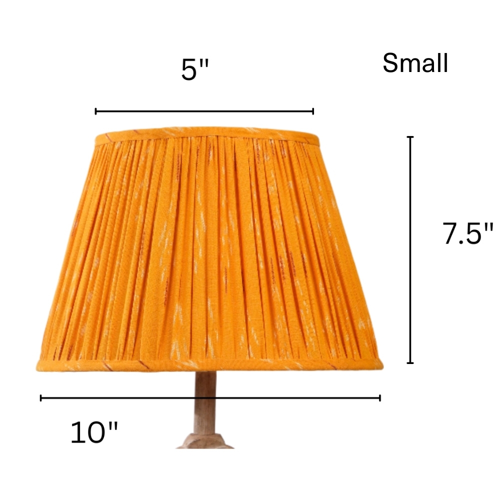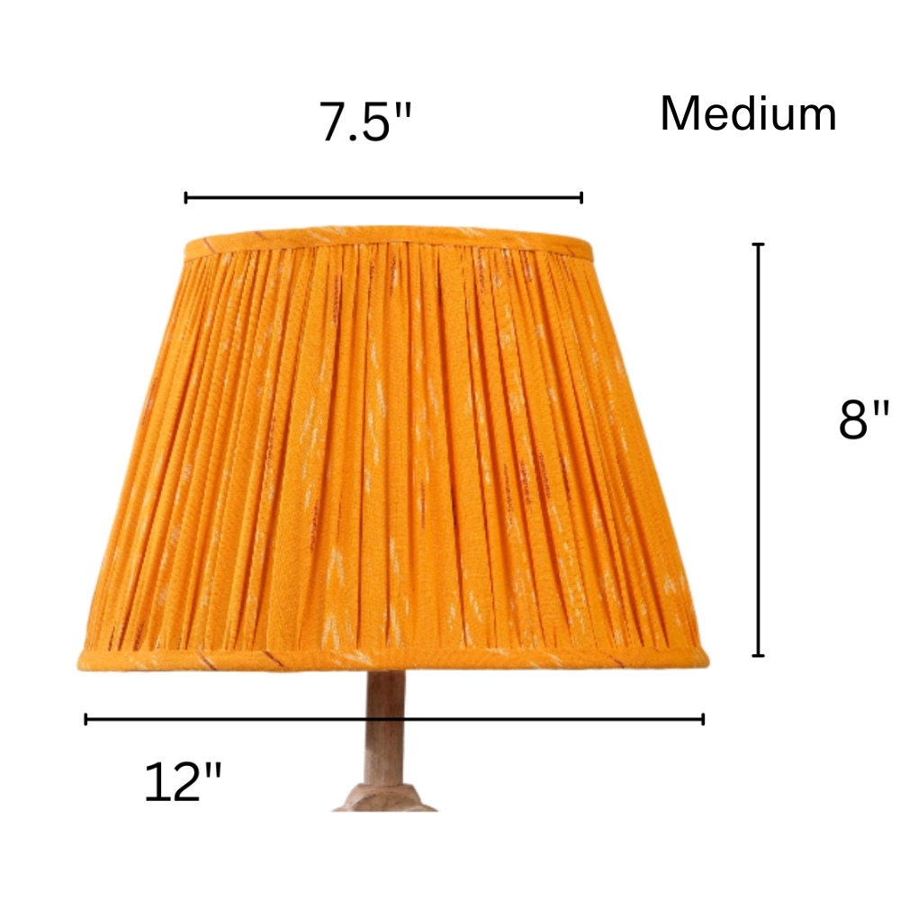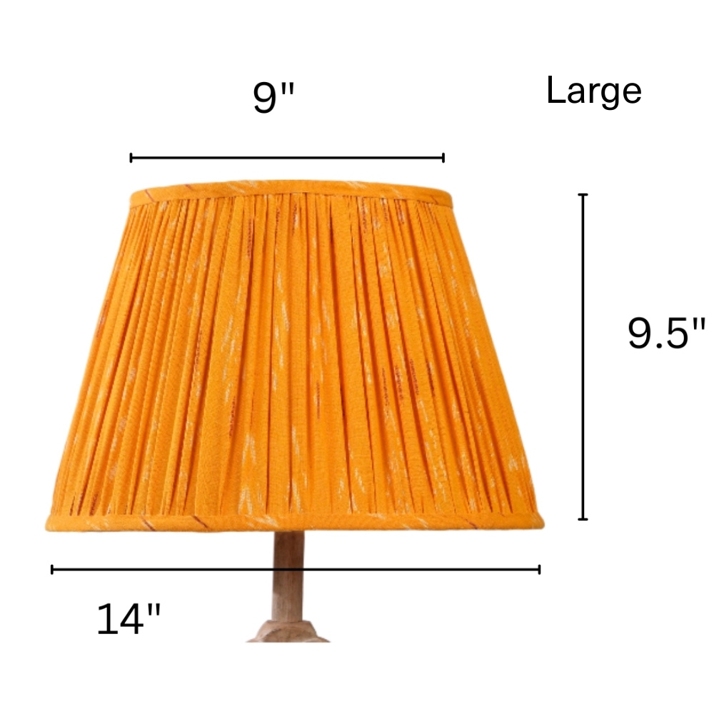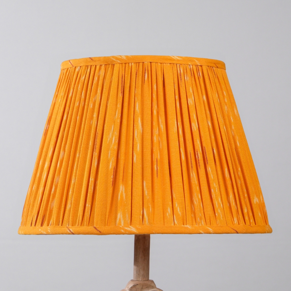 Vibrant orange lampshade weaved in Ikat pattern stands out to highlight your space with warmth. Available in 3 sizes.