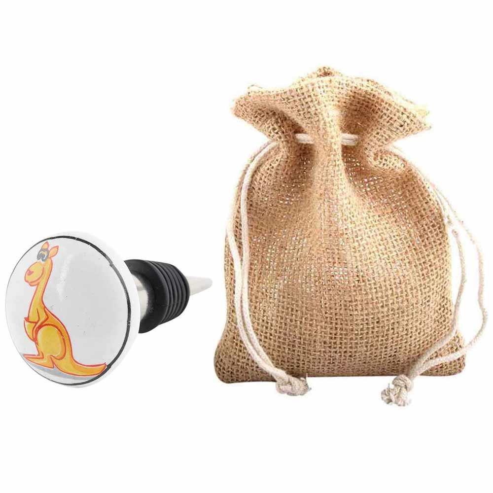 Orange Kangaroo Ceramic Flat Wine Bottle Stopper. Zinc Alloy Wine Bottle Stopper with Attractive Jute Bag Packaging.