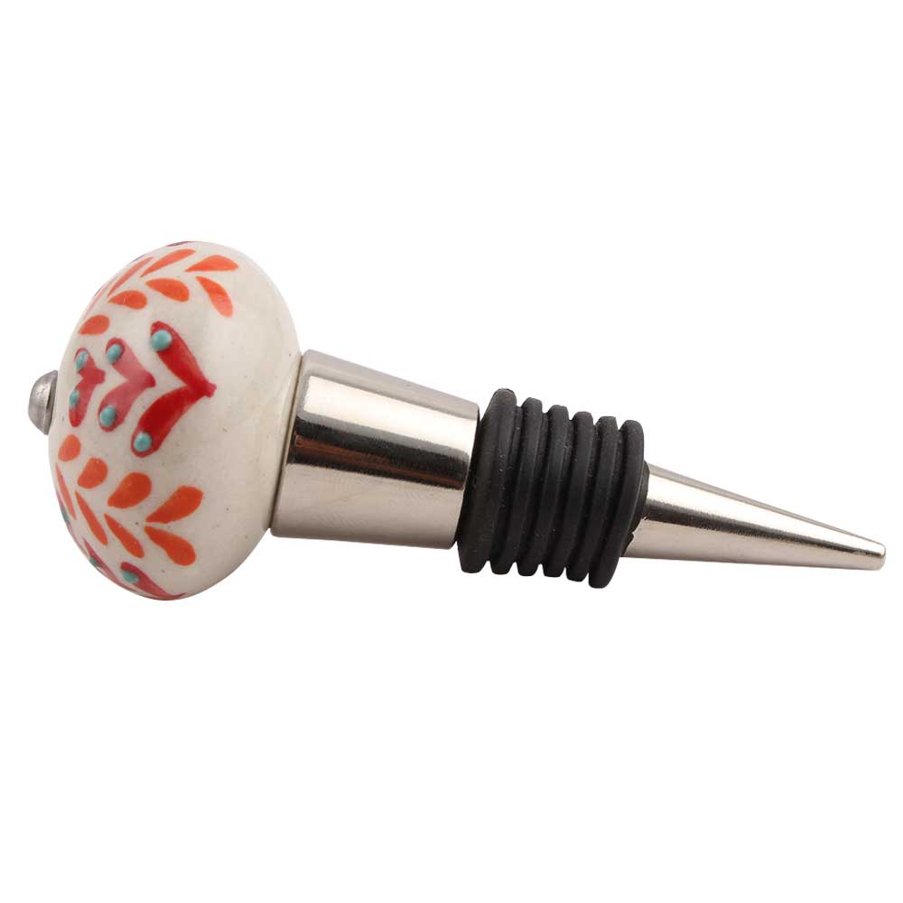 Orange Leaf Ceramic Floral Wine Stopper.zinc alloy wine bottle stopper with attractive Jute Bag Packaging.