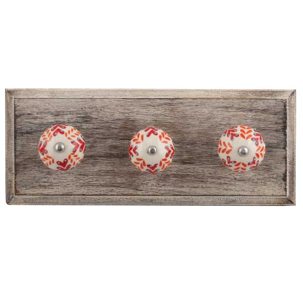 Orange Leaf Ceramic Floral Wooden Hook. A Perfect Complement to the Soft Tone of the Wood are these White Traditional Hat & Coat Hook Made of Genuine Porcelain and Brass. It can be use to Hang Jewellery, Leashes, Towels, Scarves, Light Weight Sweaters, Caps Etc.
