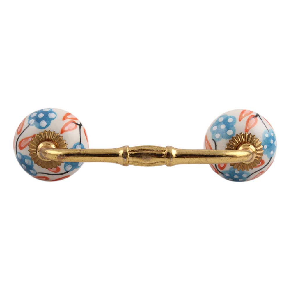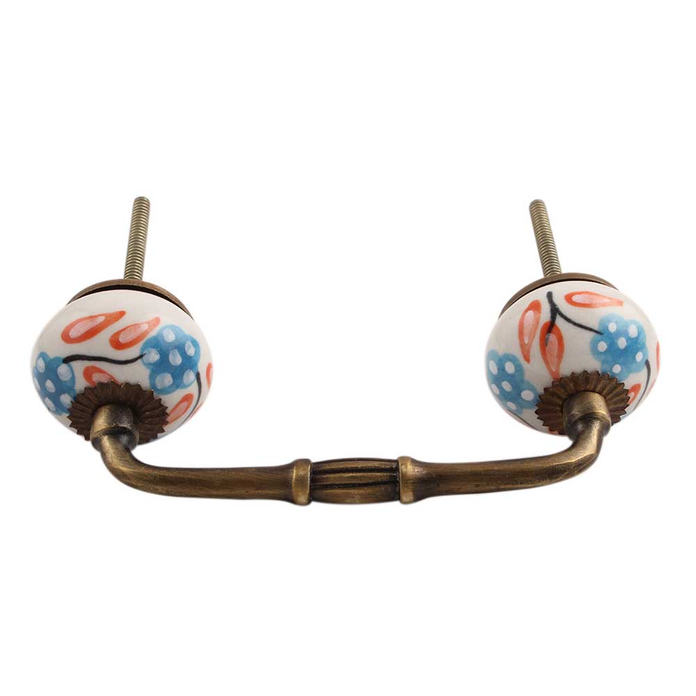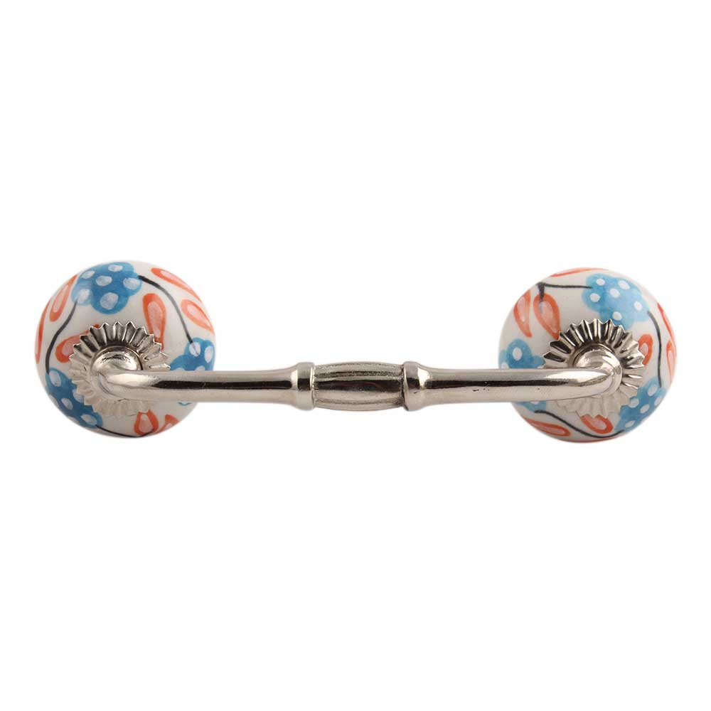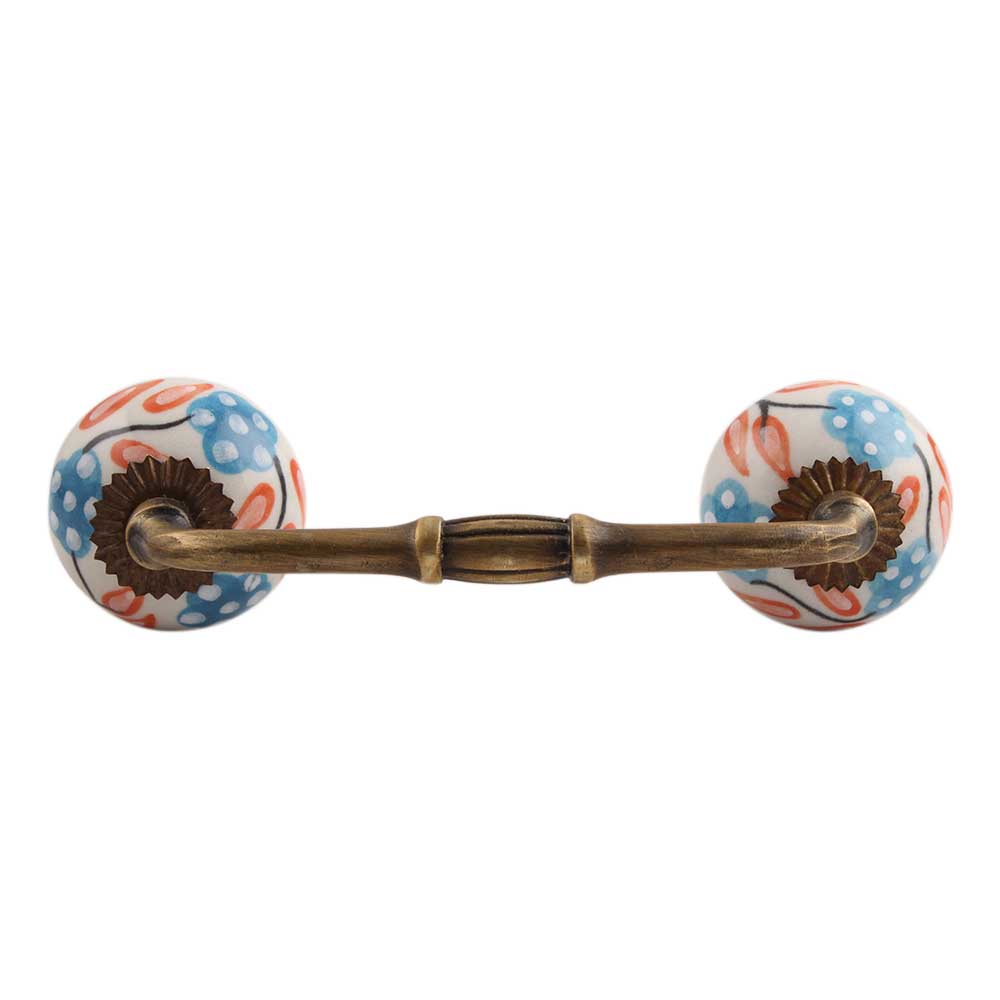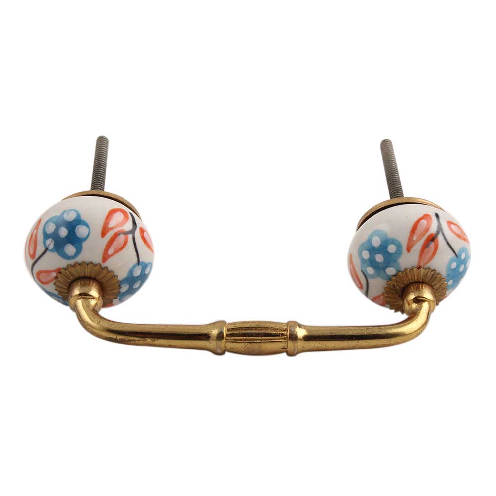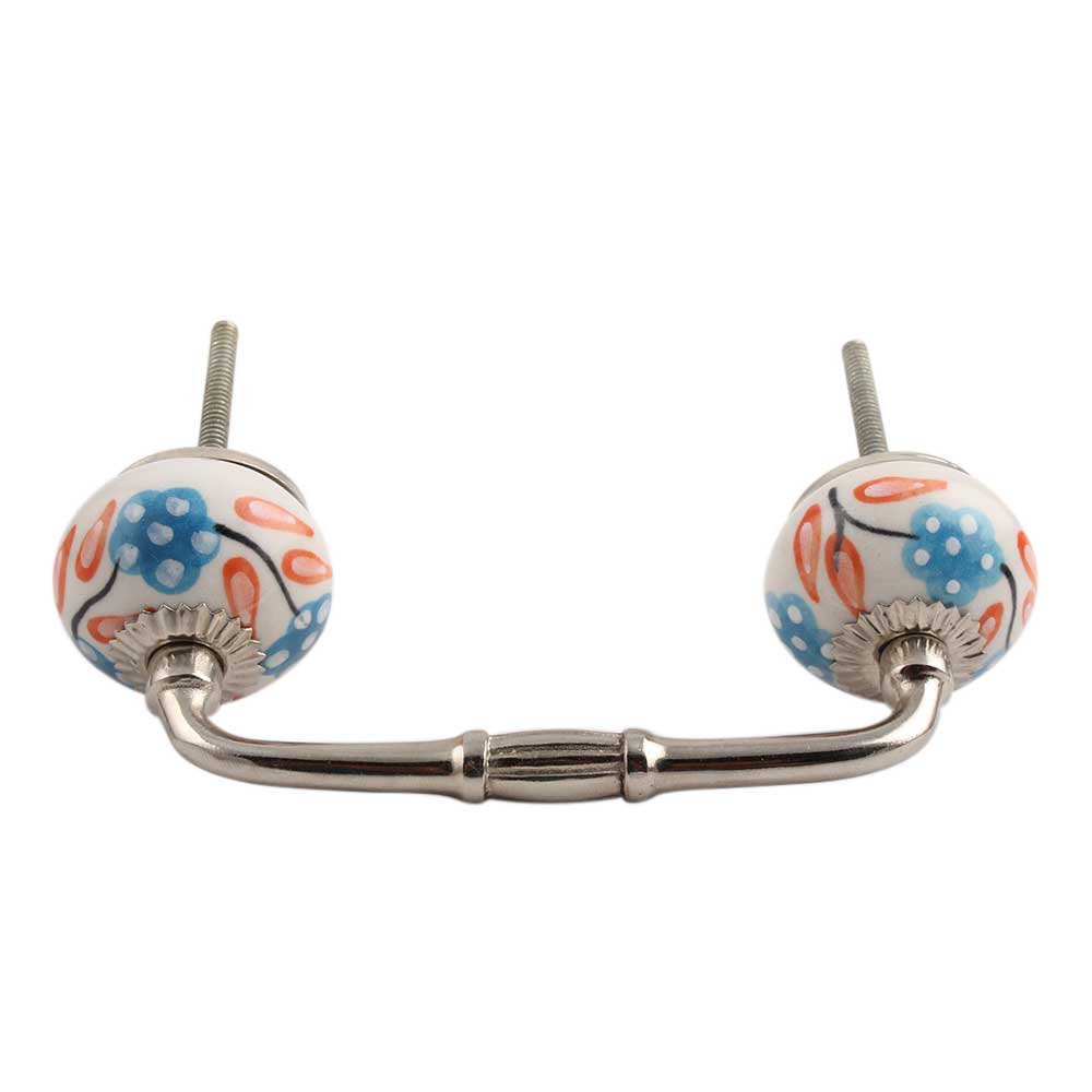 Orange Leaf Flower Ceramic Bridge Handle. Ideal for Drawer, Dresser, Cabinet, Wardrobe, Cupboard and Almirah.