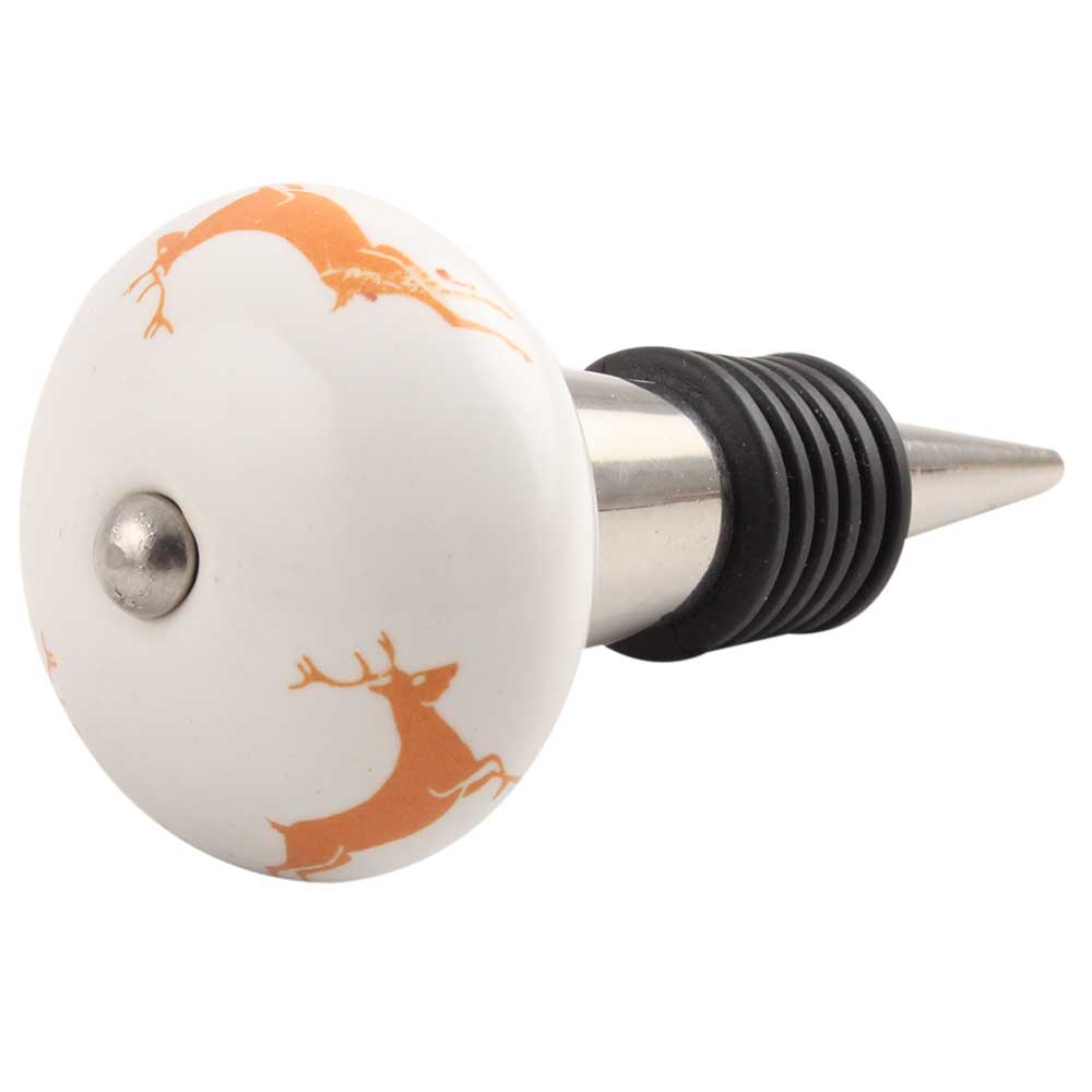Orange Runing Rein Deer Pattern Ceramic Wine Stopper.zinc alloy wine bottle stopper with attractive Jute Bag Packaging.