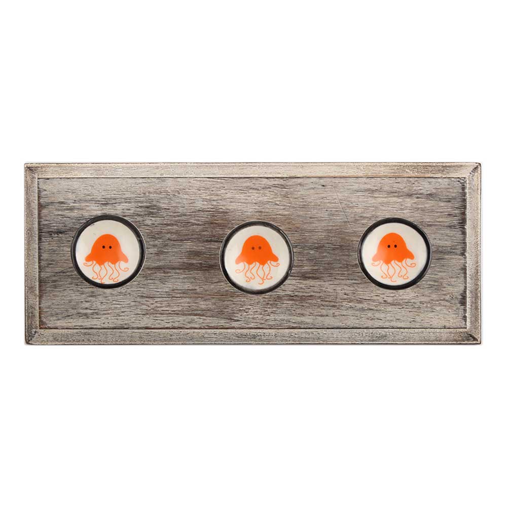 Orange Sea Fish Flat Ceramic Wooden Hook. A Perfect Complement to the Soft Tone of the Wood are these White Traditional Hat & Coat Hook Made of Genuine Porcelain and Brass. It can be use to Hang Jewellery, Leashes, Towels, Scarves, Light Weight Sweaters, Caps Etc.