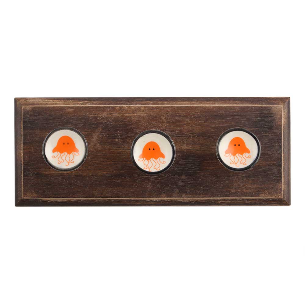 Orange Sea Fish Flat Ceramic Wooden Hook. A Perfect Complement to the Soft Tone of the Wood are these White Traditional Hat & Coat Hook Made of Genuine Porcelain and Brass. It can be use to Hang Jewellery, Leashes, Towels, Scarves, Light Weight Sweaters, Caps Etc.