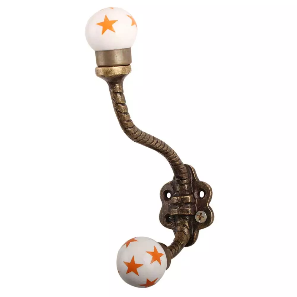 Orange Star Ceramic Floral Iron Hook-Ehg-97. When Put on Wall or Cabinet It Gives A Sturdy Look. This Hook is Strong Enough to Hold Your Cloths, Keys, Tea Cups, Coffee Mugs, Hand Towels Etc. Etc.