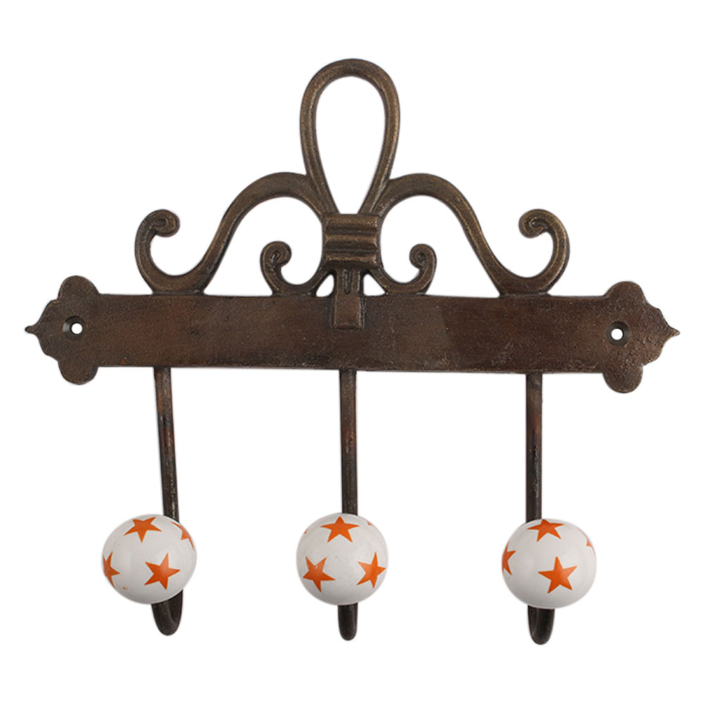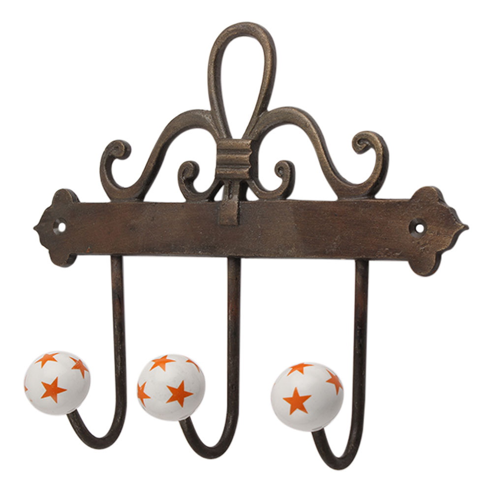 Orange Star Ceramic Iron Hook. A Perfect Complement to the Soft Tone of the Wood are these White Traditional Hat Coat Hook Made of Genuine Porcelain and Brass. It can be use to Hang Jewellery, Leashes, Towels, Scarves, Light Weight Sweaters, Caps Etc.