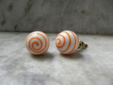 Orange Striped White Round Glass Knobs. Ideal for Drawer, Dresser, Cabinet, Wardrobe, Cupboard and almirah