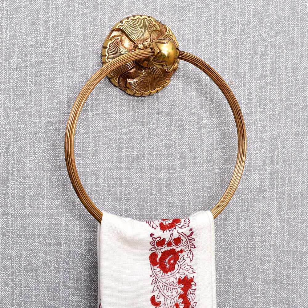 This brass ring towel holder is ideal for adding vintage flair to your bathroom. This towel holder is finished in brushed bright brass with an on-trend vintage style and has an ornate inspired design. The towel ring is large enough to hold large bath towels and flannels, allowing you to keep your bathroom tidy and stylish. The brass colour adds a vibrant look that is sure to impress. This would also be ideal for storing tea towels in the kitchen.