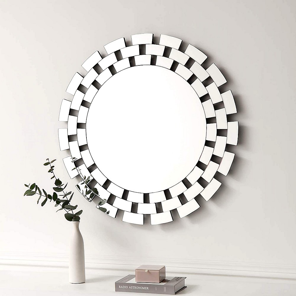 The dual-layer mosaic frame adds depth and radiance, reflecting light beautifully across any room.
