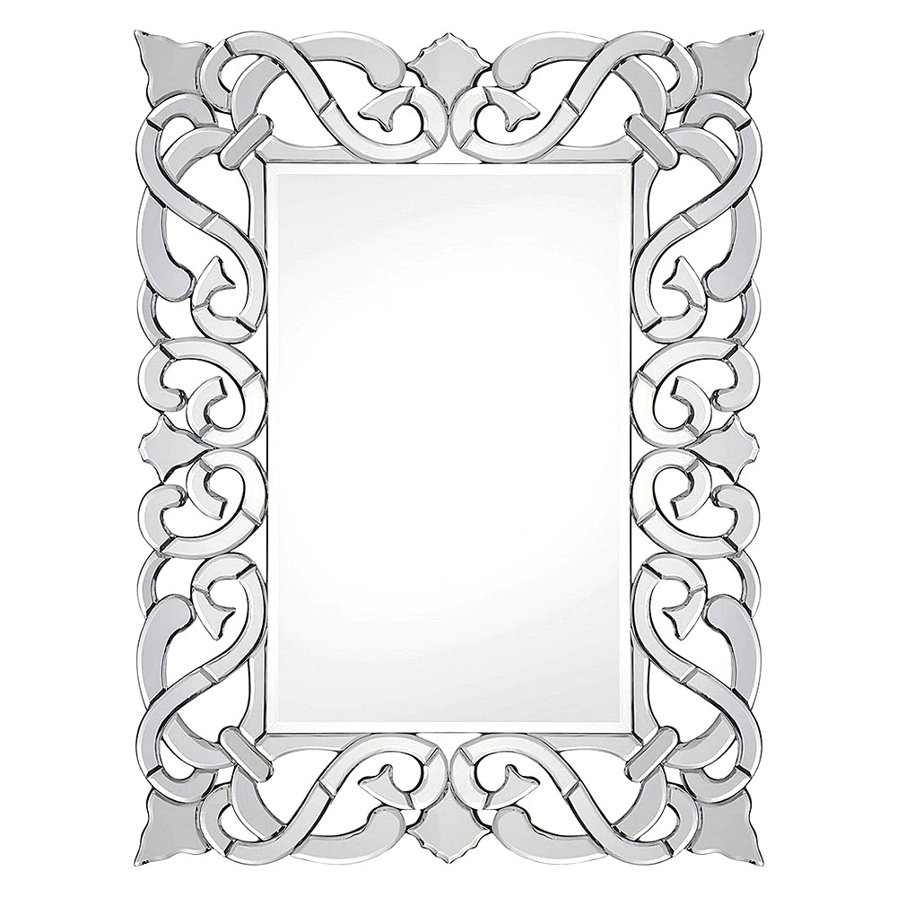 Adorn your walls with this clear glass scrollwork rectangular mirror, a handcrafted masterpiece blending timeless elegance with Venetian artistry. The ornamental scroll frame surrounds the reflective center, creating a luxurious focal point for refined interiors. Packed & quality-checked by Indianshelf.