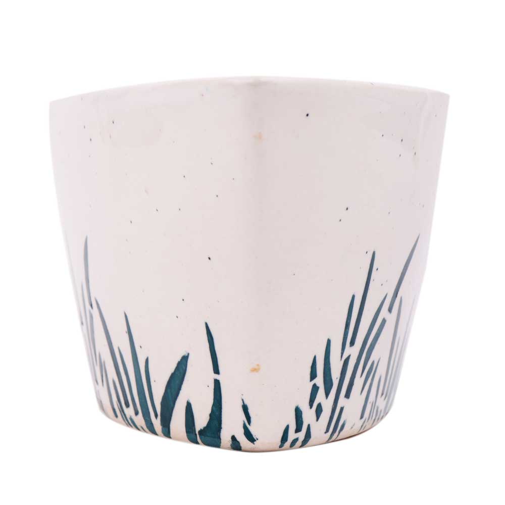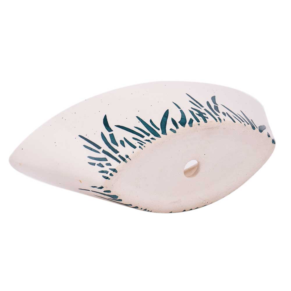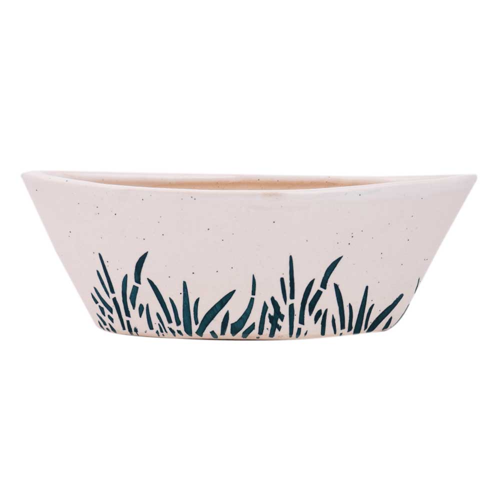 Boat Shape White Ceramic Pot With Hand painted Black Leaves helps to beautify your home, office and corporate offices, shops and other commercial places. Gift for your Friends , relatives and colleagues.