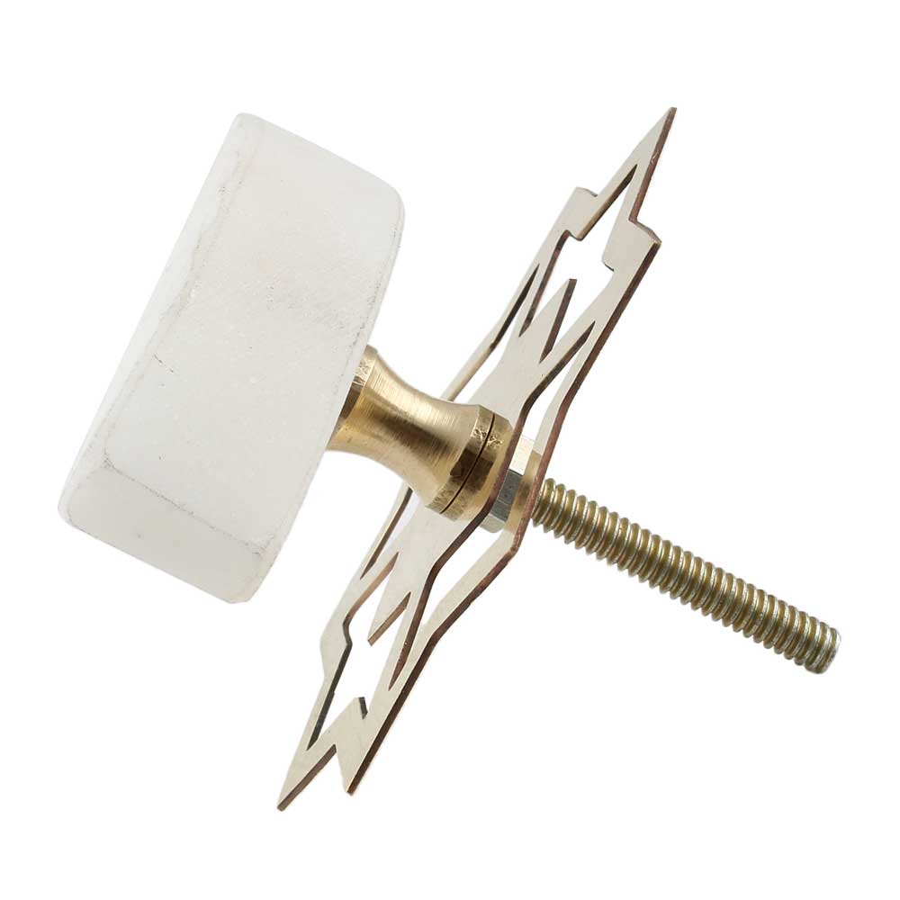 The addition of brass plates on the surface of the stone knobs adds a contemporary twist to the natural stone's timeless appeal. Brass’s warm, metallic sheen contrasts beautifully with the cool, neutral tone of the white stone, creating a perfect balance of sophistication and style that works in various interior design schemes.