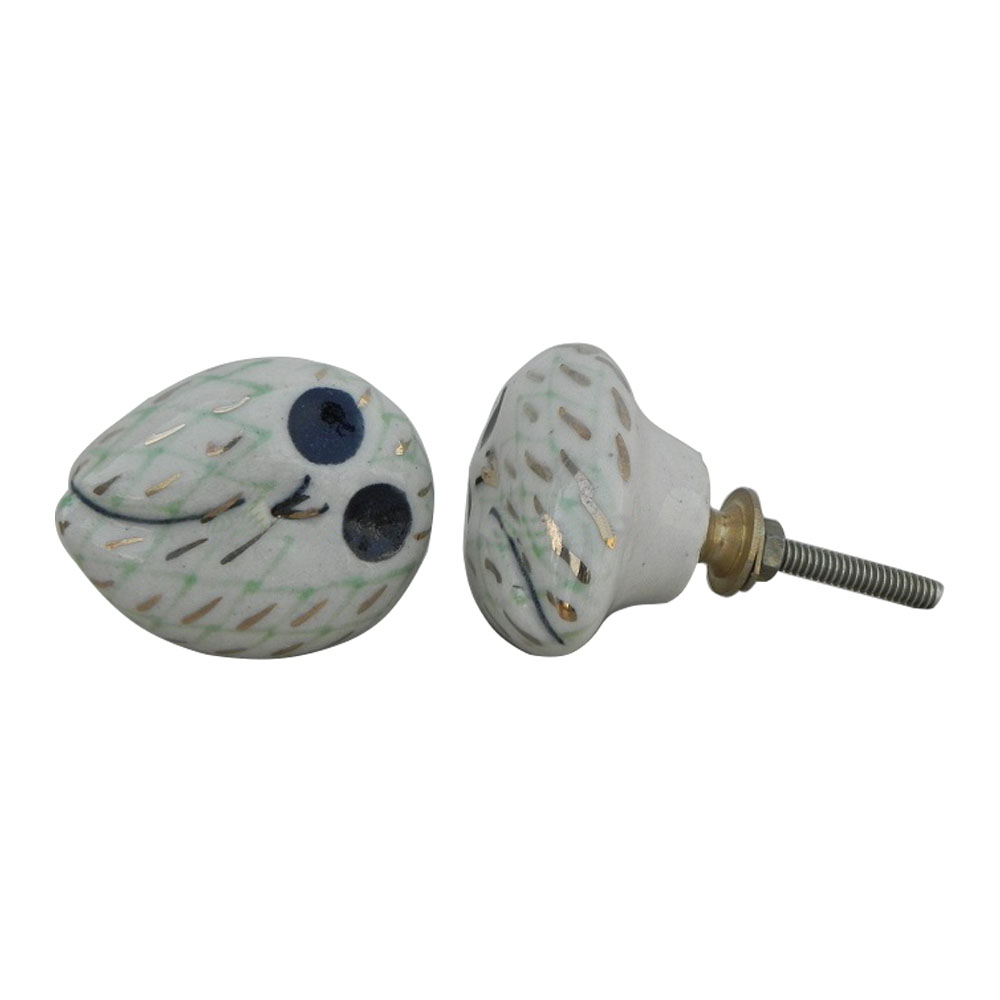 Handmade owl ceramic bird knob is ideal for drawer, dresser, cabinet, wardrobe, cupboard and almirah. This handle and knob is kids friendly with no sharp edges on corner. Washer, nut & screw/bolt included