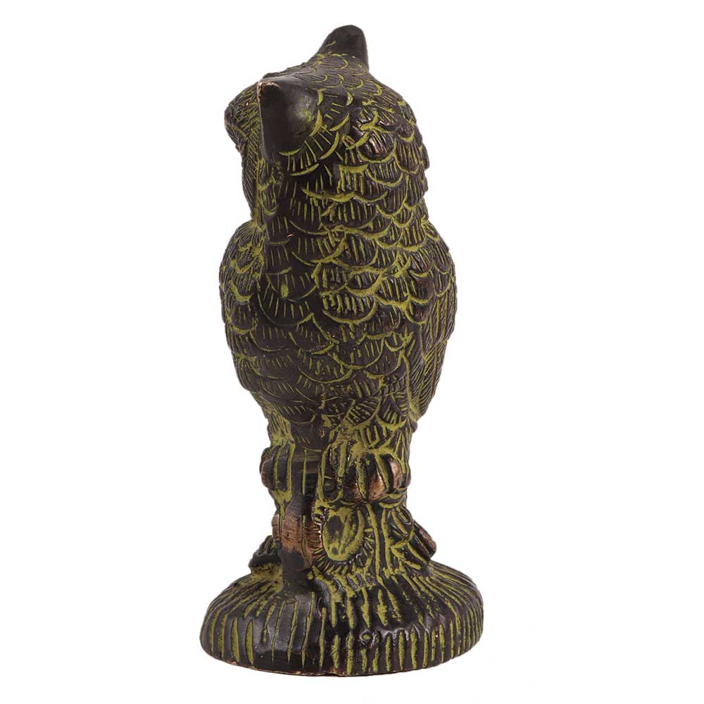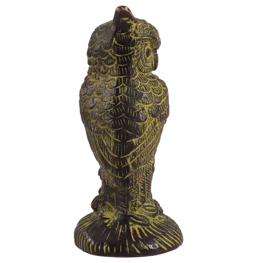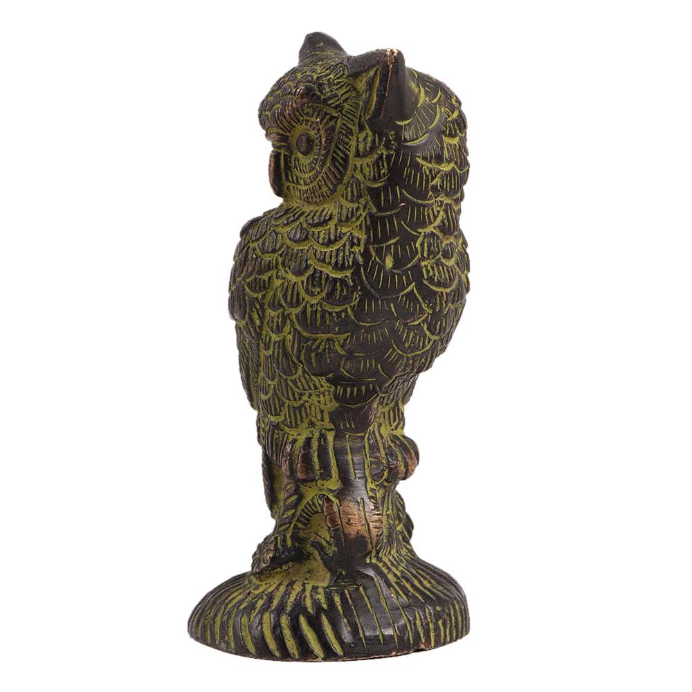 A beautifully crafted vintage brass owl statue to heighten the beauty or spirit at work or home. Add strength to your faith with this sturdy brass statue, which is significant in Hindu religious traditions as the vessel of Goddess Lakshmi, the goddess of wealth as well as in Feng-Shui for placement in the family or knowledge sector of the home. With this vintage Owl sitting on log brass decorative Showpiece, bless your location and enhance the beauty and spirituality of your home or place of business. Created in brass using the sand casting method and embellished with lovely colour. Add a sophisticated, spiritual touch to the interior design of your home.