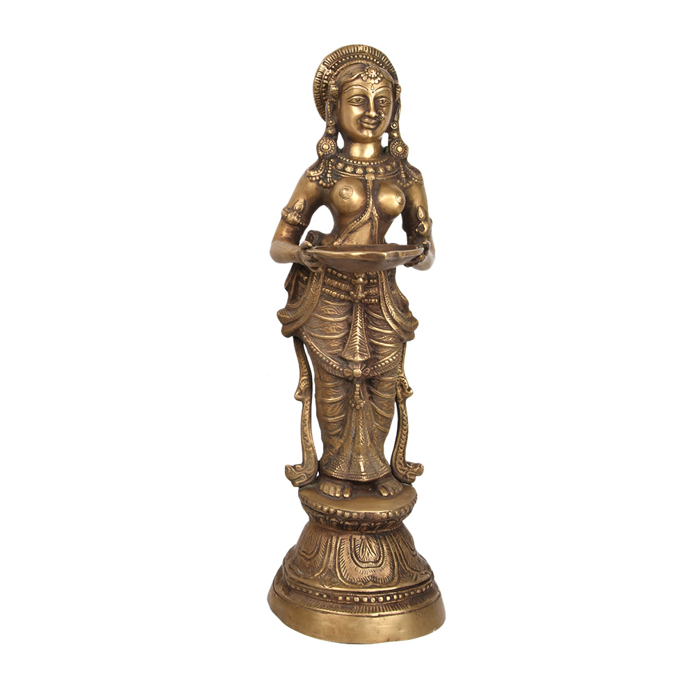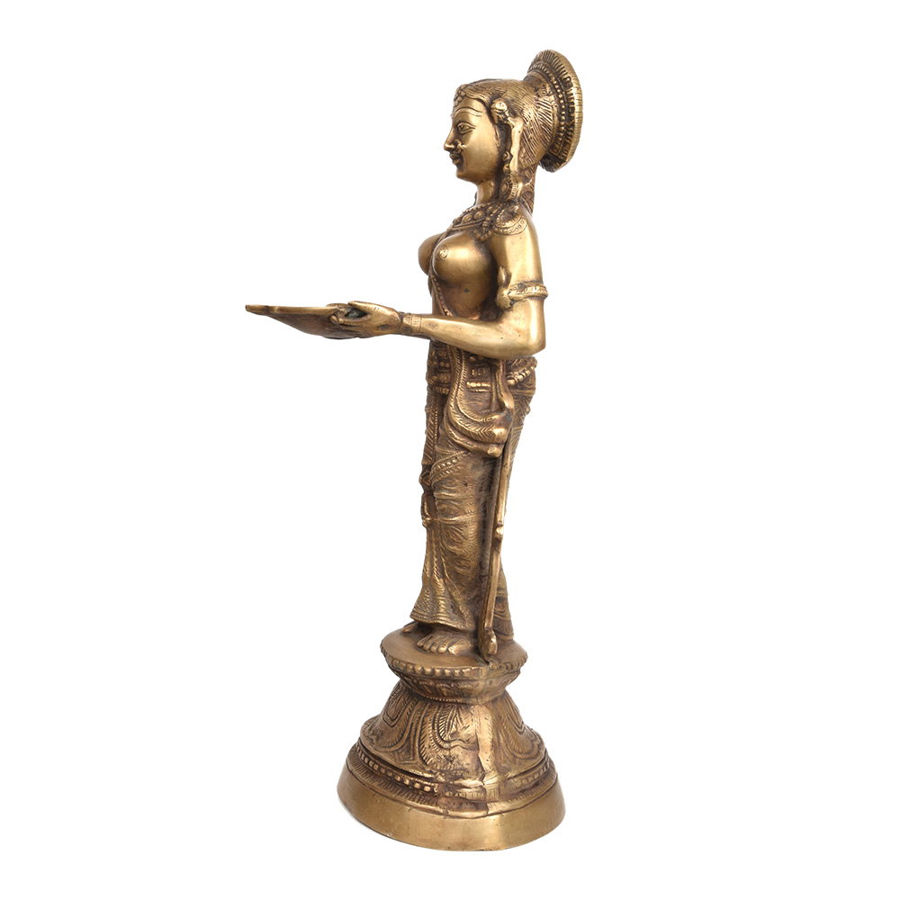 Paavai Vilakku Bronze Lamp in the Form of a Lady Holding Vessel with Her Hands.