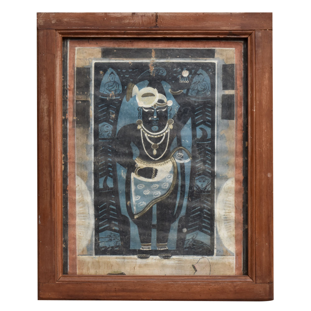 This painting is not just a work of art, but a gateway to the captivating world of Hindu mythology and spirituality. Immerse yourself in the serene gaze of Lord Krishna Ji, and allow his benevolent presence to inspire and uplift your soul. Whether you're a devotee or simply appreciate the beauty of fine art, this painting is a must-have addition to your home or sacred space. Elevate your living or meditation space with the enchanting presence of Lord Krishna Ji. This painting is a true masterpiece that will leave a lasting impression on all who behold it, serving as a constant reminder of the divine beauty and wisdom that permeates our world.