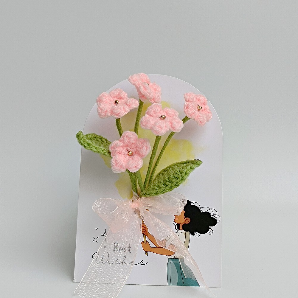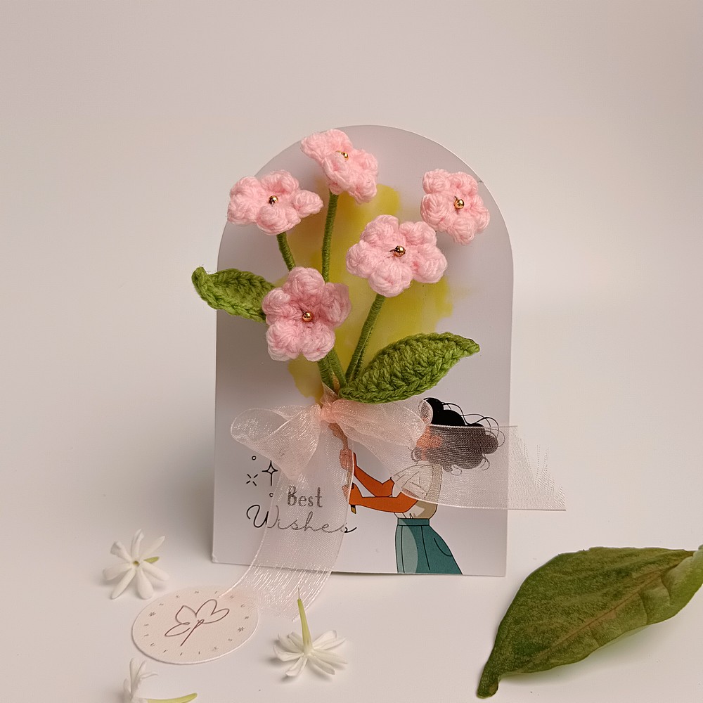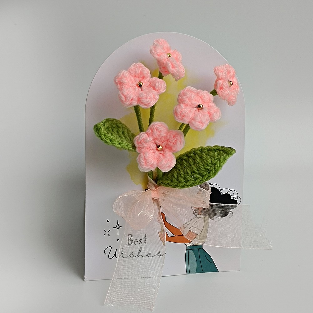 Keep your pink crochet piece away from moisture and direct sun to prevent dust and fading. Dust gently with a soft brush or a hairdryer on cool, and reshape stems carefully if needed.