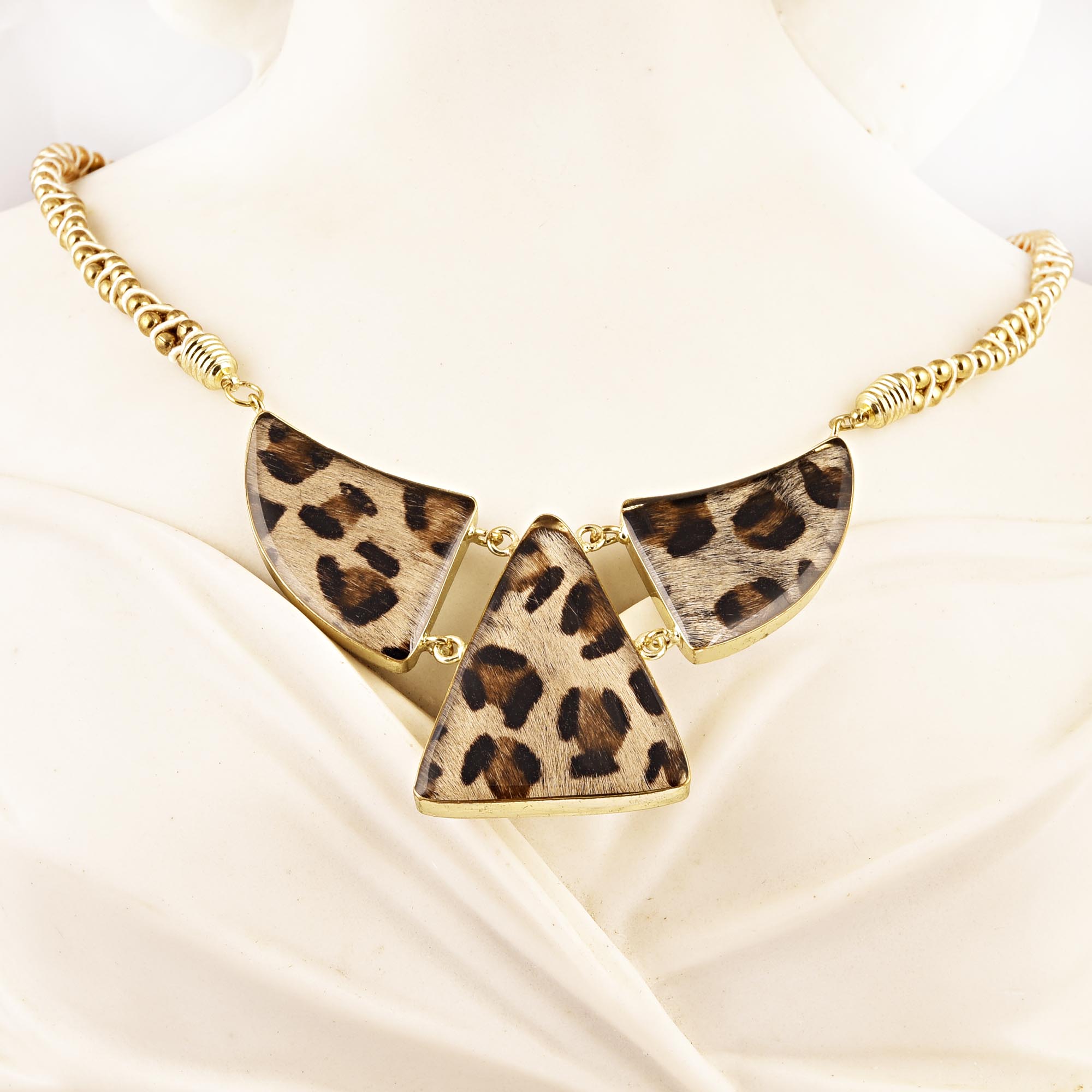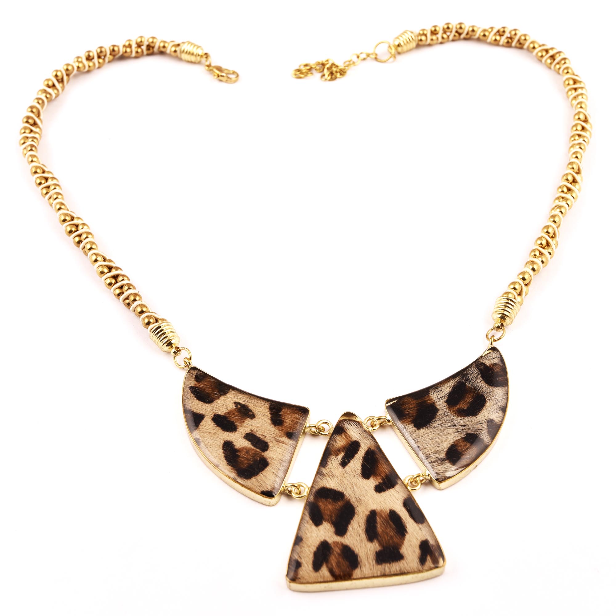 Paw Bib Necklace New Beautiful Jewellery. Leather, Glass, with Brass Chain and Brass Clasp.