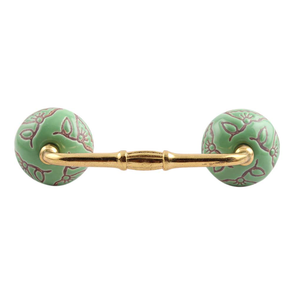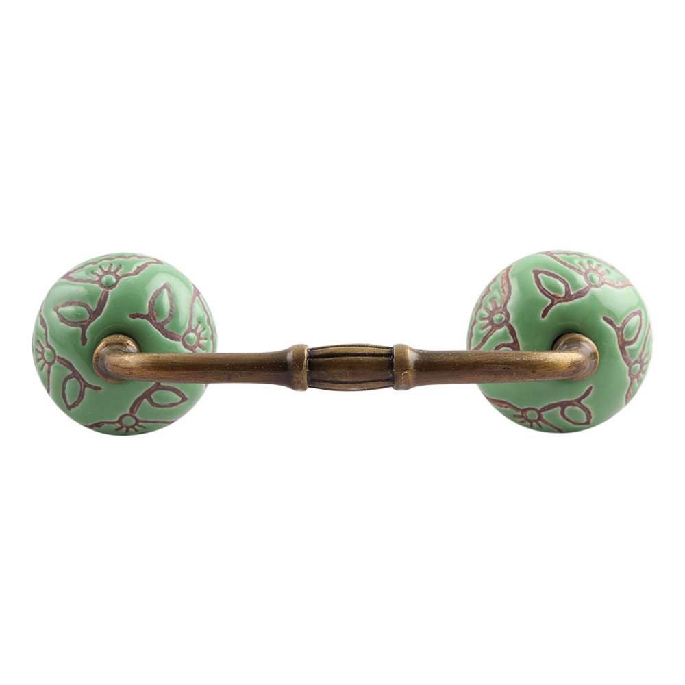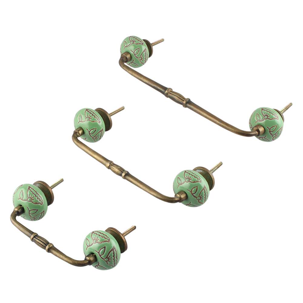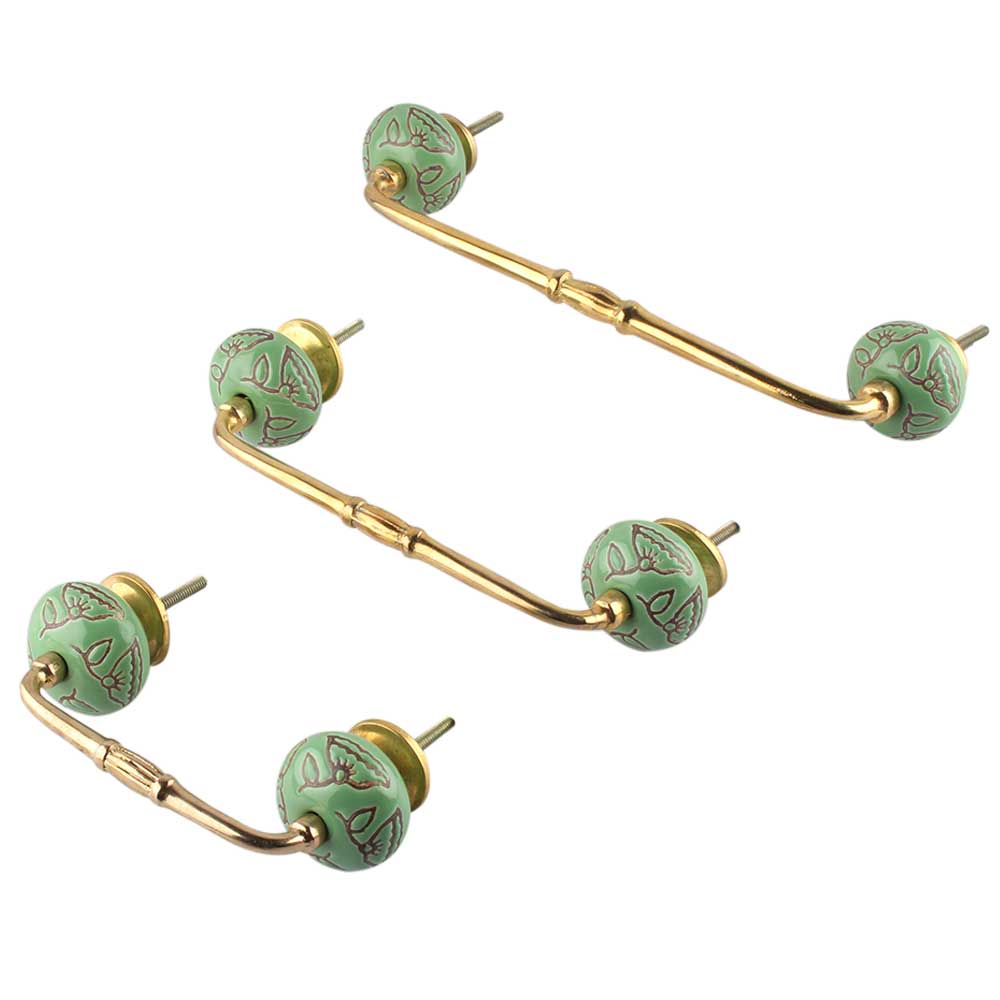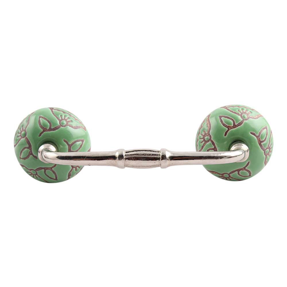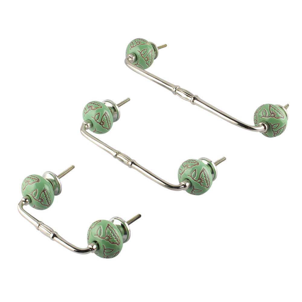 Pea Green Calla Lily Etched Ceramic Bridge Handle. Ideal for Drawer, Dresser, Cabinet, Wardrobe, Cupboard and Almirah.